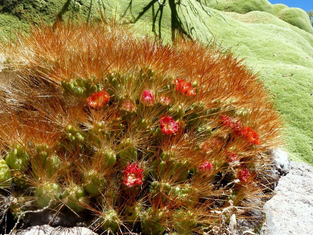 Cumulopuntia ignescens, Cactaceae familyasına ait, Güney Amerika’nın yüksek rakımlı ve kurak bölgelerinde doğal olarak yetişen dikkat çekici bir kaktüs türüdür. Bu tür özellikle Bolivya ve Arjantin’in And Dağları çevresindeki taşlık ve kurak alanlarında yayılım gösterir. Cumulopuntia cinsi, Opuntioideae alt familyasında yer alan ve çoğunlukla küçük segmentlerden oluşan gövdeleriyle yoğun kümeler oluşturan kaktüsleri kapsar. Cumulopuntia ignescens ise bu cins içinde özellikle yoğun diken örtüsü ve parlak renkli çiçekleri ile öne çıkan türlerden biridir. Bitki zamanla yere yakın büyüyen geniş yastık formunda kümeler oluşturabilir ve doğal ortamında oldukça büyük koloniler halinde gelişebilir.