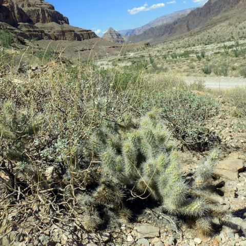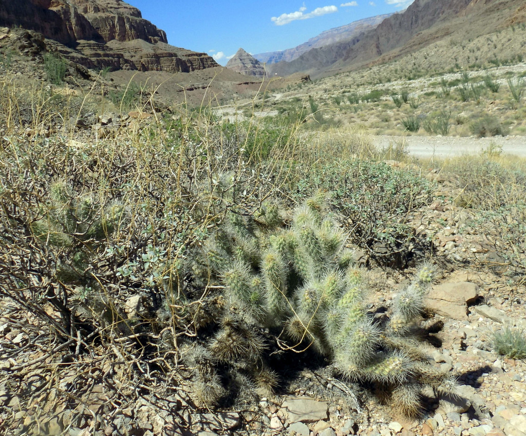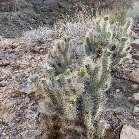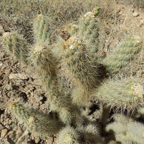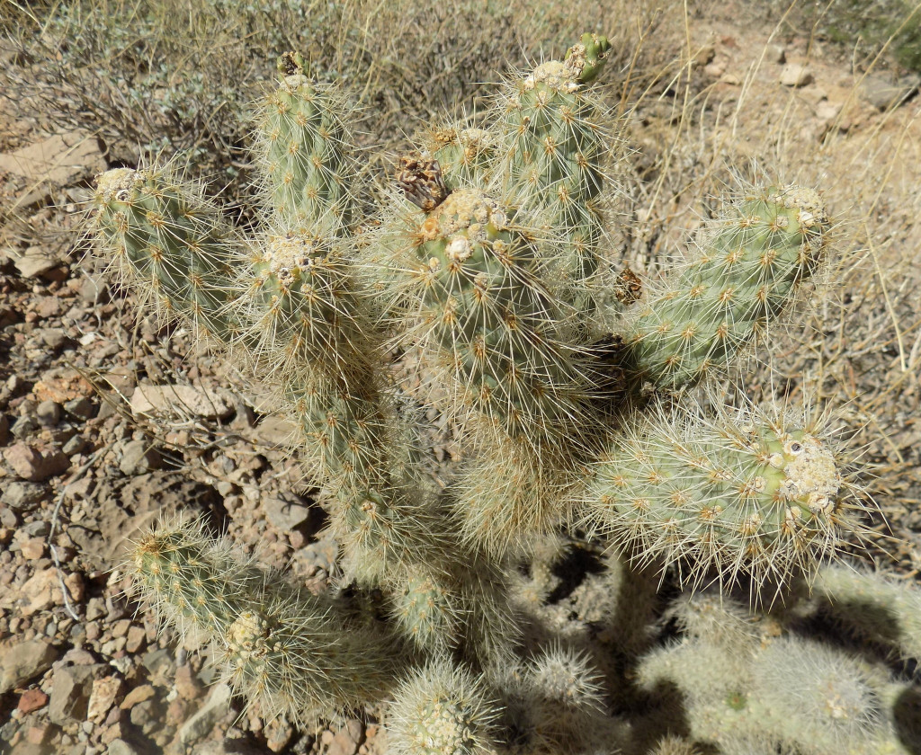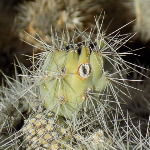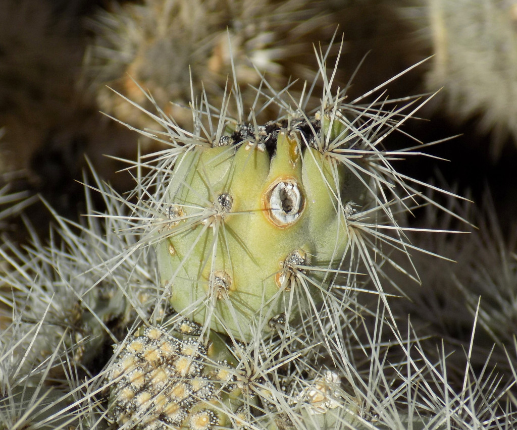 Cylindropuntia abyssi, cholla olarak bilinen Cylindropuntia grubuna ait, silindirik segment yapısı ve yoğun diken örtüsü ile dikkat çeken güçlü bir kaktüs türüdür. Segmentler genellikle dar, uzamış ve birbirine eklenerek dallanan bir yapı oluşturur. Bu dallanma zamanla bitkiye yarı çalı formunda, düzensiz ama hacimli bir görünüm kazandırır. Bitkinin en belirgin özelliklerinden biri yoğun ve uzun diken yapısıdır. Areoller boyunca çıkan dikenler açık sarı, krem veya beyaza yakın tonlarda olabilir ve oldukça keskindir. Bu dikenler sadece koruma amaçlı değil, aynı zamanda bitkiyi aşırı güneş ışığından koruyan bir gölgeleme mekanizması da sağlar. Yoğun diken örtüsü, bitkiye griye çalan bir siluet kazandırabilir.