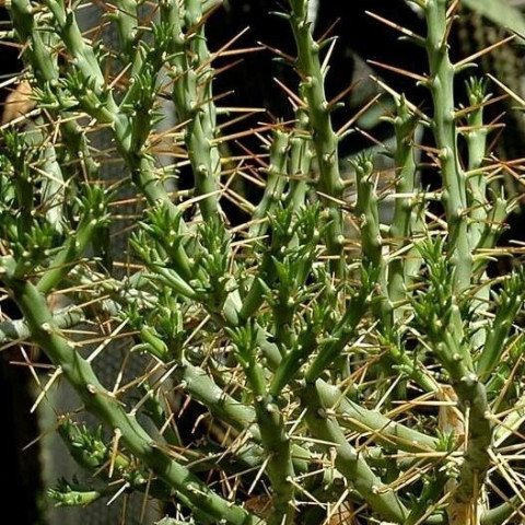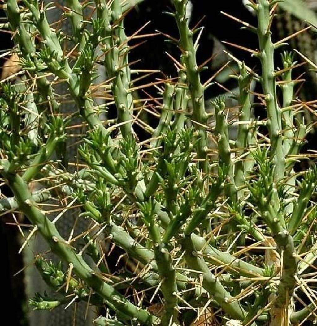 Cylindropuntia caribaea, Cylindropuntia cinsinin daha ince segmentli ve daha dik büyüme eğilimi gösteren türlerinden biridir. Bu türde segmentler oldukça dar, uzun ve silindirik yapıdadır. Gövde boyunca düzenli aralıklarla çıkan yan dallar, bitkiye yukarı doğru uzayan, nispeten daha düzenli ve “iskeletimsi” bir form kazandırır. Diğer bazı cholla türlerinde görülen yoğun ve karmaşık dallanma yapısı bu türde daha kontrollü ve seyrektir. Bu da bitkinin daha sade ama karakteristik bir siluet oluşturmasını sağlar. Segment yüzeyi açık yeşil tonlardadır ve genç sürgünlerde bu renk daha parlak görünür. Areoller belirgin ve düzenli dizilmiştir. Bu areollerden çıkan dikenler genellikle uzun, sert ve dikkat çekici şekilde turuncuya çalan sarı tonlardadır. Bu diken rengi, bitkiye uzaktan bile ayırt edilebilir bir görünüm kazandırır. Dikenler ince ama oldukça sivridir ve temas halinde kolayca deriye batabilir.