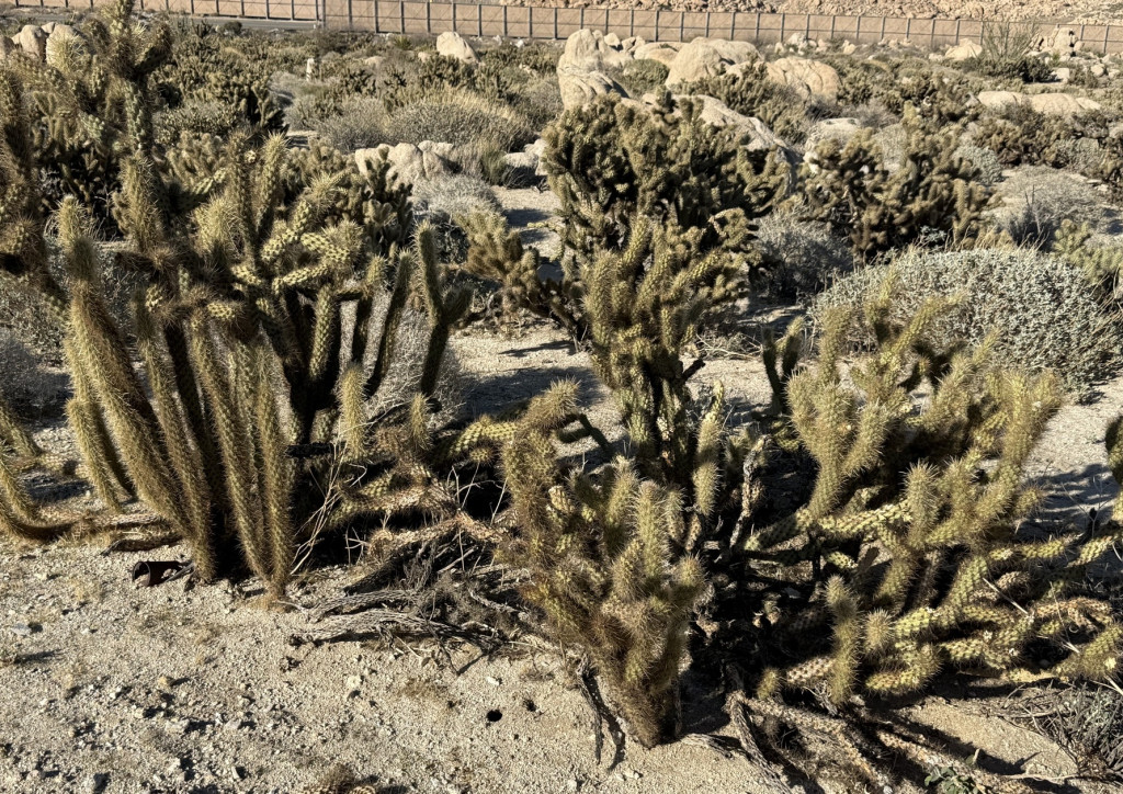 Cylindropuntia wolfii, kompakt yapısı, açık renkli yoğun dikenleri ve özellikle turuncuya çalan çiçekleriyle öne çıkan bir Cholla türüdür. Doğal olarak ABD’nin güneybatısında, özellikle Kaliforniya ve Arizona çevresindeki çöl ekosistemlerinde yayılım gösterir. Genellikle düşük boylu, yayılıcı ve sık dallanan bir yapı sergiler. Bu form, bitkinin hem rüzgâra karşı dirençli olmasını sağlar hem de bulunduğu alanda yoğun, koruyucu bir çalı yapısı oluşturmasına yardımcı olur.