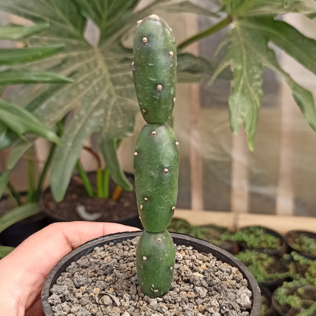 Opuntia canterae, klasik yassı “yapraklı” Opuntia türlerinden farklı bir görünüme sahip olan, daha silindire yakın ve parça parça büyüyen bir kaktüs türüdür. Gövdesi birbirine eklenmiş küçük, oval ya da hafif uzamış parçalar şeklindedir. Bu parçalar üst üste eklenerek dikey bir form oluşturur. İlk bakışta küçük yeşil boncukların üst üste dizilmiş hali gibi görünür. Rengi genellikle koyu yeşildir ve sağlıklı bir bitkide yüzey parlak görünür. Bu türde klasik yaprak bulunmaz. Görülen tüm yeşil bölümler su depolayan gövde parçalarıdır. Her parça üzerinde küçük noktalar vardır ve bu noktalardan kısa dikenler çıkar. Dikenler genellikle seyrek ve kısa yapıdadır. Bazı örneklerde dikenler neredeyse yok denecek kadar az olabilir. Bu durum bitkiye daha “yumuşak” bir görünüm verir ancak yine de çıplak elle temas ederken dikkatli olunmalıdır.