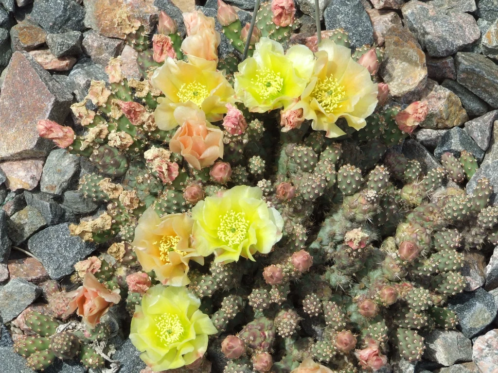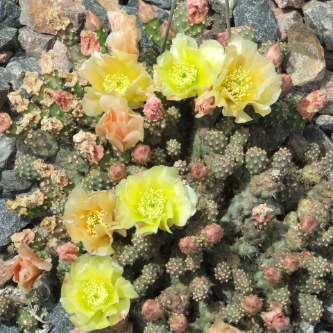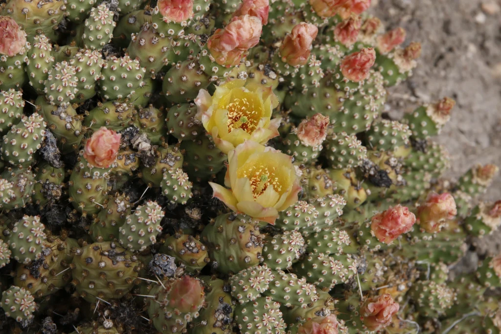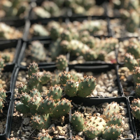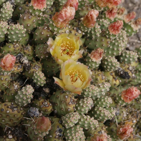Opuntia fragilis ‘Little Gray Mound’, Cactaceae familyasına ait olan Opuntia fragilis türünün kültivarlarından biridir. Bu kültivar özellikle kompakt büyüme formu, küçük segment yapısı ve gri-yeşil tonlara sahip gövdesi ile dikkat çeker. Opuntia fragilis türü Kuzey Amerika’nın geniş bir bölümünde doğal olarak yayılış gösteren dayanıklı bir kaktüstür. ‘Little Gray Mound’ ise bu türün seçilmiş bir formudur ve genellikle peyzaj düzenlemelerinde, kaya bahçelerinde ve koleksiyon amaçlı kaktüs yetiştiriciliğinde tercih edilir. Bitki yere yakın şekilde gelişen bir yapı oluşturur ve zamanla küçük tepeler halinde genişleyen kümeler meydana getirir. Bu kültivarın en belirgin özelliklerinden biri oldukça kompakt ve düzenli bir büyüme formuna sahip olmasıdır. Bitki çoğunlukla genişliği yüksekliğinden daha fazla olan yastık benzeri bir görünüm oluşturur. Kuraklığa dayanıklı yapısı sayesinde suyun sınırlı olduğu ortamlarda da gelişimini sürdürebilir.