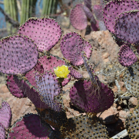 Opuntia gosseliniana, Cactaceae familyasına ait olan ve özellikle mor-gri tonlara dönebilen gövde renkleri ile tanınan Opuntia türlerinden biridir. Bu tür Kuzey Amerika’nın güneybatı bölgelerinde ve özellikle Meksika’nın kuzey kesimlerinde doğal olarak yayılış gösterir. Kurak ve yarı kurak iklimlere uyum sağlayabilen Opuntia gosseliniana genellikle kayalık arazilerde, çöl yamaçlarında ve açık alanlarda gelişim gösterir. Bitki çoğunlukla yere yakın şekilde büyüyen veya zamanla genişleyerek çalı formu oluşturan bir yapıya sahiptir. Olgun bireyler çok sayıda segment üretir ve bu segmentlerin üst üste gelişmesi ile geniş kümeler meydana gelir. Opuntia cinsinin birçok üyesinde olduğu gibi bu türde de etli segmentler bitkinin su depolama görevini üstlenir. Bu özellik bitkinin kuraklık koşullarına dayanabilmesini sağlar.