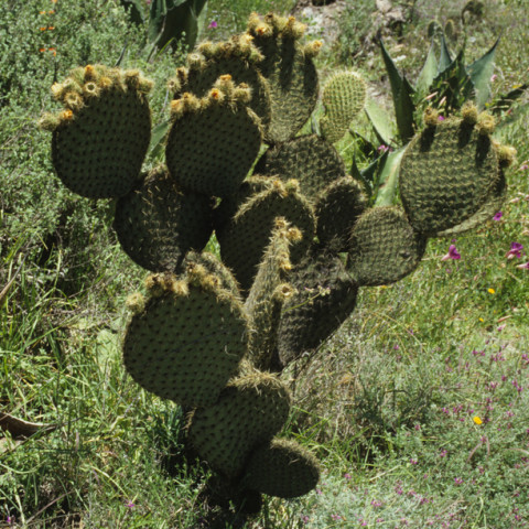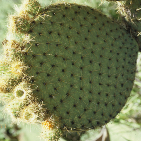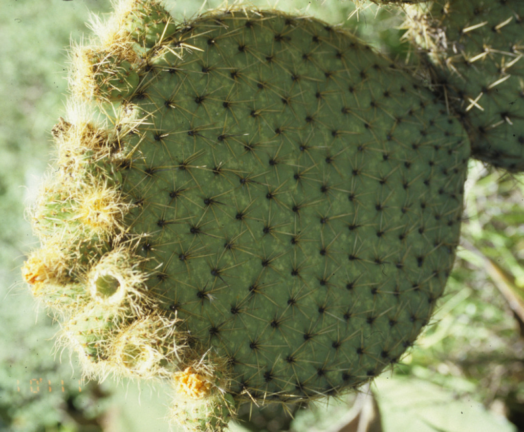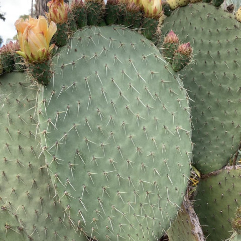 Opuntia huajuapensis, Cactaceae familyasına ait olan ve Opuntia cinsinin Meksika kökenli türlerinden biridir. Tür adı, bitkinin doğal olarak bulunduğu Oaxaca eyaletindeki Huajuapan bölgesinden gelmektedir. Bu tür genellikle yarı kurak bölgelerde, taşlık yamaçlarda ve güneş ışığının yoğun olduğu açık alanlarda gelişim gösterir. Doğal habitatında genellikle yüksek ışık alan, iyi drenajlı ve mineral açısından zengin topraklarda yetişir. Opuntia huajuapensis zamanla genişleyen ve yoğun segmentler oluşturan bir kaktüs türüdür. Bitki olgunlaştıkça alt segmentlerin kalınlaşmasıyla yarı odunsu bir taban oluşabilir ve bu yapı bitkinin daha sağlam bir şekilde büyümesine yardımcı olur. Bu tür çoğunlukla geniş kümeler oluşturarak gelişir ve doğal ortamında oldukça dayanıklı bir yapı sergiler. Opuntia huajuapensis’te yaprak olarak görülen yapılar aslında etli gövde segmentleridir. Bu segmentler genellikle oval veya yuvarlağa yakın bir forma sahiptir. Segmentlerin rengi çoğunlukla açık yeşil ile orta yeşil tonları arasında değişebilir. Segment yüzeyinde areol adı verilen küçük noktalar bulunur ve bu yapılardan dikenler gelişir. Dikenler çoğunlukla sert ve orta uzunluktadır. Sarımsı, gri veya açık kahverengi tonlarında görülebilirler.