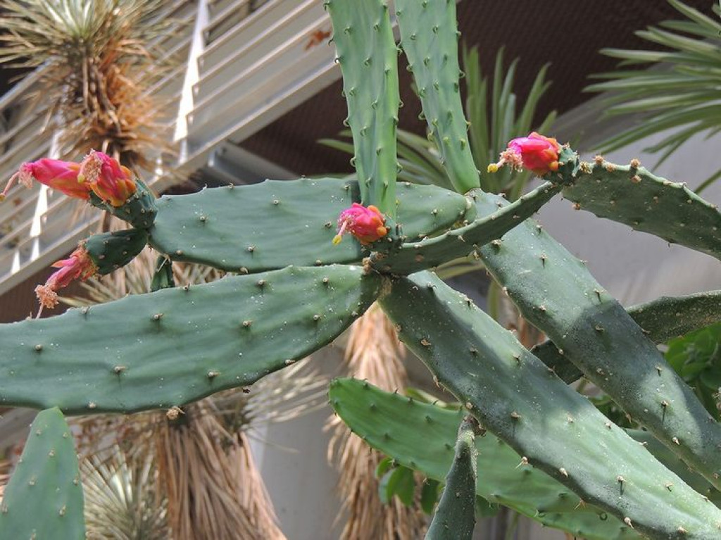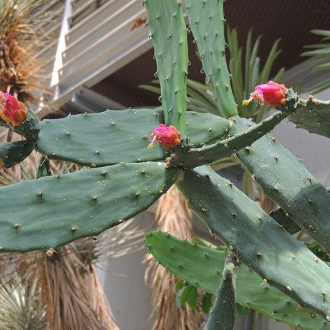 Opuntia karwinskiana, Cactaceae familyasına ait olan ve Meksika kökenli Opuntia türlerinden biridir. Tür adı, 19. yüzyılda Meksika florası üzerinde çalışmalar yapan doğa bilimci Wilhelm Friedrich Karwinski’ye ithafen verilmiştir. Bu tür özellikle Meksika’nın güney ve orta bölgelerinde, taşlık arazilerde ve yarı kurak bölgelerde doğal olarak yetişir. Doğal habitatında genellikle yamaçlarda, kayalık alanlarda ve güneş ışığının yoğun olduğu açık ortamlarda gelişir. Opuntia karwinskiana çoğu Opuntia türünden farklı olarak zamanla daha uzun ve yarı ağaç formuna yaklaşan bir yapı oluşturabilir. Olgun bireylerde alt segmentler kalınlaşarak belirgin bir gövde oluşturur ve bitki birkaç metre yüksekliğe ulaşabilir. Opuntia karwinskiana’da yaprak gibi görünen yapılar aslında etli gövde segmentleridir. Bu segmentler genellikle uzun, dar ve hafif kıvrımlı bir form gösterebilir. Segmentlerin yüzeyi koyu yeşil veya griye çalan yeşil tonlarında olabilir. Segmentler üzerinde areol adı verilen küçük noktalar bulunur ve bu yapılardan dikenler gelişir. Dikenler genellikle ince ve orta uzunlukta olup sarımsı veya açık kahverengi tonlarında olabilir. Bazı areollerde glochid adı verilen çok ince mikro dikenler de bulunabilir. Segmentlerin etli dokusu su depolama özelliğine sahiptir ve bu özellik bitkinin kurak dönemlerde uzun süre hayatta kalmasını sağlar.