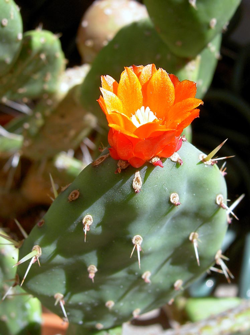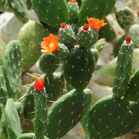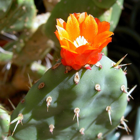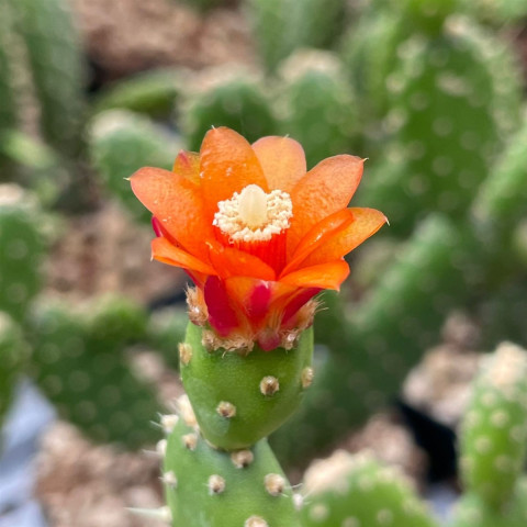 Bu türde dikenler çoğunlukla kısa ve seyrek yapıdadır. Bazı bitkilerde dikenler oldukça küçük olabilir ve segment yüzeyi daha pürüzsüz bir görünüm kazanabilir. Bu küçük dikenler ciltte kolayca tahrişe neden olabileceği için bitki ile temas ederken dikkatli olunmalıdır. Opuntia quitensis’in çiçekleri oldukça dikkat çekici olup genellikle turuncu ile kırmızı-turuncu tonlarında görülür. Çiçekler segmentlerin üst kısımlarında oluşur ve geniş, parlak taç yapraklara sahiptir. Çiçeklenme çoğunlukla ilkbahar sonu ve yaz başı döneminde gerçekleşir ve bu dönemde bitki oldukça dekoratif bir görünüm kazanır. Çiçeklenme sonrasında bitkide küçük etli meyveler gelişir. Bu meyveler başlangıçta yeşil renkte olup olgunlaştıkça genellikle kırmızı veya turuncuya yakın tonlara dönüşebilir. Meyveler doğal ortamda kuşlar ve diğer küçük hayvanlar tarafından tüketilerek bitkinin tohumlarının yayılmasına yardımcı olur. Opuntia quitensis doğal habitatında yoğun güneş ışığı alan açık alanlarda yetişir. Bu nedenle yetiştiricilikte de güneşli konumlar tercih edilmelidir. Gün boyunca güçlü ışık alan ortamlarda bitki daha kompakt ve sağlıklı segmentler oluşturur. Yetersiz ışık koşullarında segmentler uzayabilir ve bitki formu bozulabilir. Toprak seçimi açısından bu tür iyi drenaj sağlayan mineral ağırlıklı toprak karışımlarını tercih eder. Uzun süre nemli kalan topraklar kök sistemine zarar verebilir. Sulama yapılırken toprağın tamamen kuruması beklenmelidir.