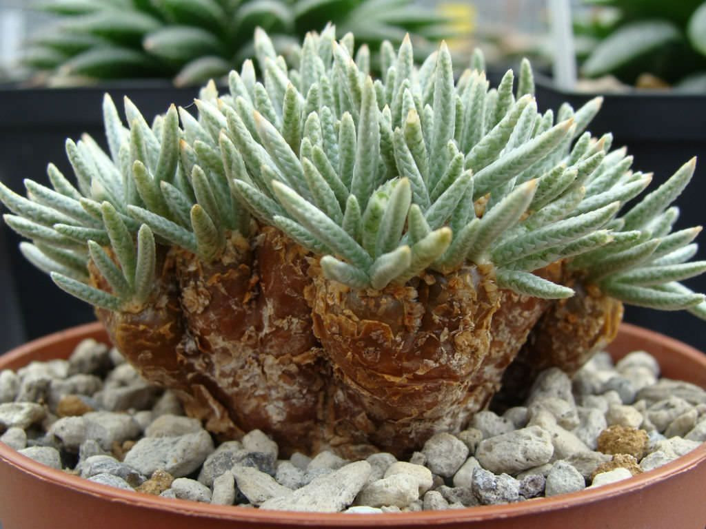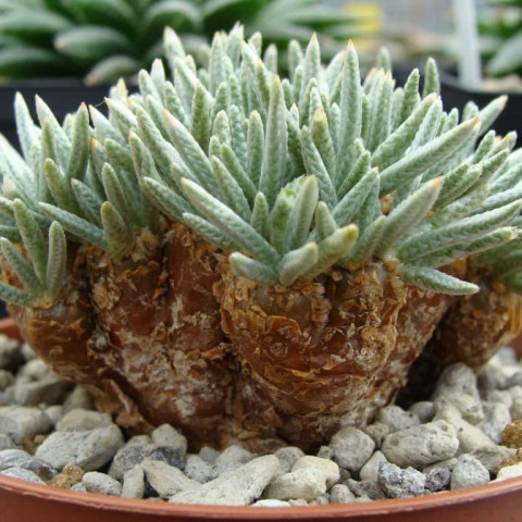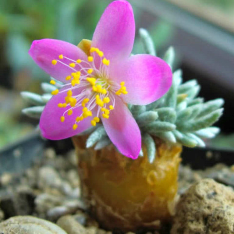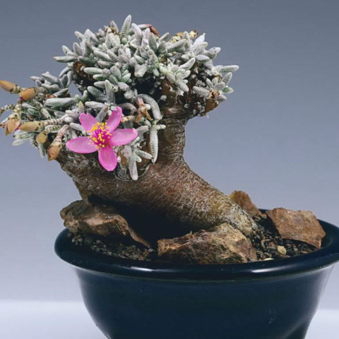 Anacampseros quinaria, Anacampserotaceae familyasında yer alan, koleksiyon değeri yüksek ve sıra dışı görünüme sahip sukulent türlerinden biridir. Bu tür, kompakt yaprak kümeleri ile dikkat çekerken aynı zamanda zamanla belirginleşen kalınlaşmış gövde tabanı sayesinde diğer birçok türden ayrılır. Küçük boyutlu olmasına rağmen yaş aldıkça karakter kazanan görünümü, onu özellikle koleksiyon yetiştiriciliğinde öne çıkarır. Doğal yaşam alanlarında kurak koşullara uyum sağlamış olan Anacampseros quinaria, suyu yapraklarında ve gövde dokularında depolayarak uzun süreli kurak dönemlere dayanabilir. Sağlıklı gelişimi için temel gereksinimler güçlü aydınlık, dikkatli sulama ve yüksek geçirgenlik sağlayan toprak karışımıdır.