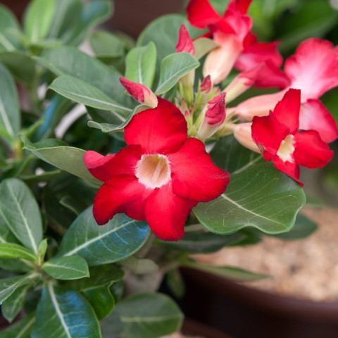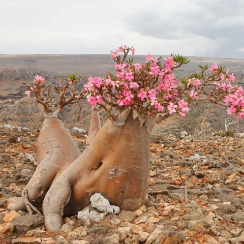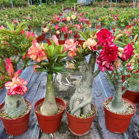 Adenium, Apocynaceae familyasında yer alan ve doğal yayılışı Doğu Afrika ile Arap Yarımadası’na uzanan, kalınlaşmış gövde yapısıyla dikkat çeken sukulent cinsidir. En bilinen türü Adenium obesum’dur. Bitki, su depolayan şişkin gövdesi (caudex) sayesinde kurak koşullara adaptasyon göstermiştir. Bu yapı, hem estetik açıdan belirgin bir form oluşturur hem de uzun süreli susuzluk dönemlerine dayanıklılık sağlar. Gövde genellikle tabanda genişler ve yukarı doğru dallanarak bonsai benzeri bir görünüm alabilir. Yüzey dokusu genç bitkilerde daha düzgünken, yaş ilerledikçe hafif çatlaklı ve kabuksu bir yapı oluşabilir.
