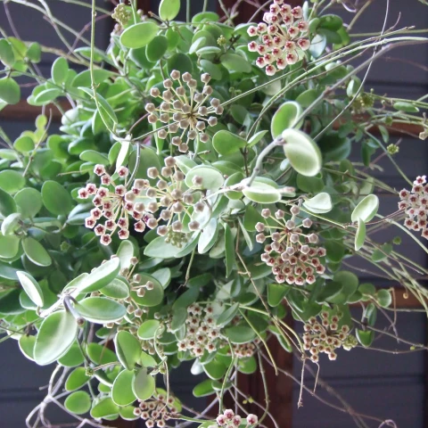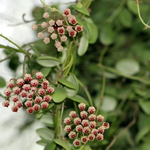 Hoya brevialata, Apocynaceae familyasında yer alan, doğal yayılış alanı Güneydoğu Asya olup, özellikle nemli ve sıcak orman ekosistemlerinde epifitik yaşam biçimi gösterir. Doğada çoğunlukla ağaç gövdeleri ve dalları üzerinde tutunarak gelişir. Bu sayede sarkıcı veya sarılıcı formda yetiştirilebilir. Gövdeler ince ve esnek yapıdadır; boğum noktalarından yeni sürgünler oluşturarak zamanla dengeli bir bitki formu meydana getirir. Hoya brevialata’nın yaprakları, türün tanımlayıcı özelliklerinden biridir. Yapraklar küçük ile orta boyutlu, etli ve kalın dokuludur. Yaprak formu genellikle oval ile yuvarlağa yakın şekildedir. Yaprak yüzeyi düzgün, hafif parlak ve ince mumsu bir tabaka ile kaplıdır. Renk çoğunlukla koyu yeşil tonlarındadır. Yapraklar gövde üzerinde karşılıklı dizilir ve sağlıklı bireylerde düzenli bir görünüm sergiler. Tür adında yer alan brevialata ifadesi, yaprakların nispeten kısa ve kompakt yapısına atıfta bulunur. Düşük ışık koşullarında boğum araları uzayabilir ve yaprak dizilimi seyrekleşebilir.