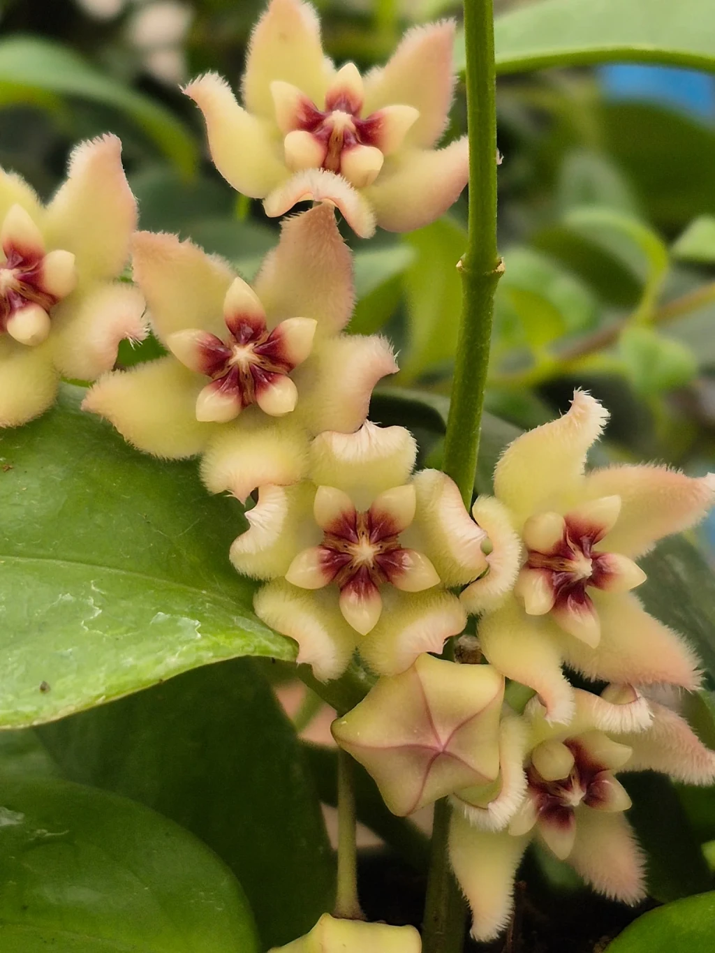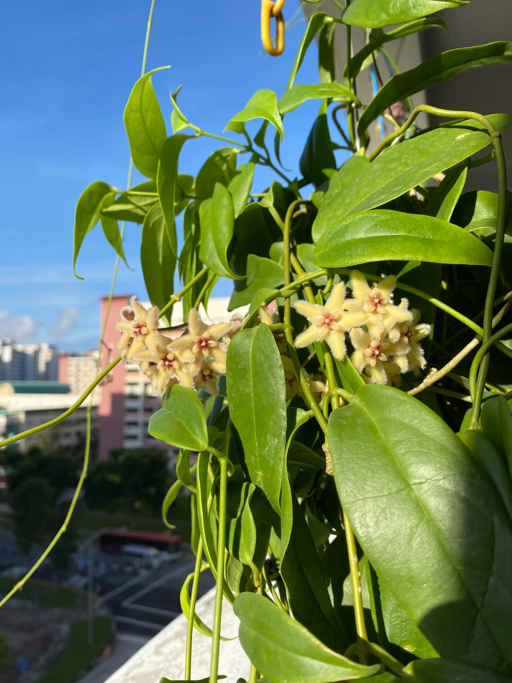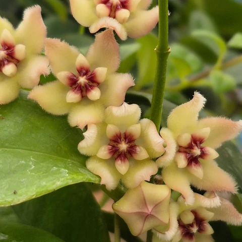 Hoya buotii’nin gövdeleri orta kalınlıkta, esnek ve boğumlu yapıdadır. Boğum noktalarından hem yaprak hem de yeni sürgün gelişimi görülür. Genç sürgünler açık yeşil renkte ve daha yumuşak dokuluyken, zamanla sertleşir ve renkleri koyulaşır. Gövde yapısı, bitkinin askılı saksılarda serbestçe sarkmasına veya destek yardımıyla yönlendirilmesine uygundur. Epifitik kökeni nedeniyle gövde ve kök dokusu uzun süreli ıslaklığa karşı hassastır; bu durum bakım sırasında drenaj ve hava dolaşımının önemini artırır. Yapraklar, Hoya buotii’nin yaprakları etli, kalın ve dayanıklı yapıdadır. Formları çoğunlukla oval ile geniş eliptik arasında değişir. Yaprak uçları yuvarlağa yakın veya hafif sivri olabilir. Yapraklar gövde üzerinde karşılıklı dizilim gösterir. Yaprak yüzeyi pürüzsüzdür ve belirgin bir mumsu tabaka ile kaplıdır. Yaprak rengi genellikle koyu yeşil tonlarındadır; bazı bireylerde damar yapısı daha açık renkte fark edilebilir. Yeterli ışık koşullarında yapraklar daha sık dokulu ve kompakt bir görünüm kazanır. Düşük ışıkta ise yaprak araları açılabilir ve bitki formu gevşeyebilir.