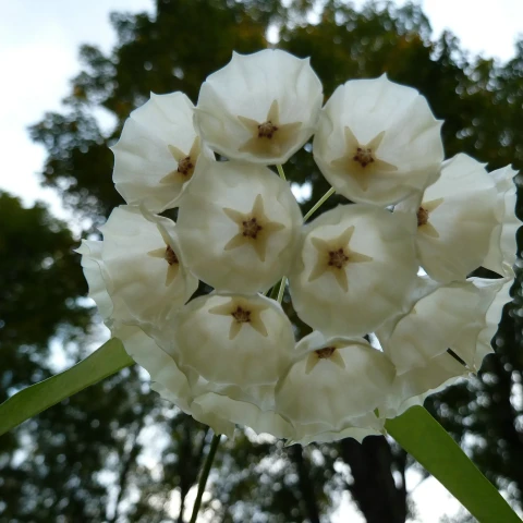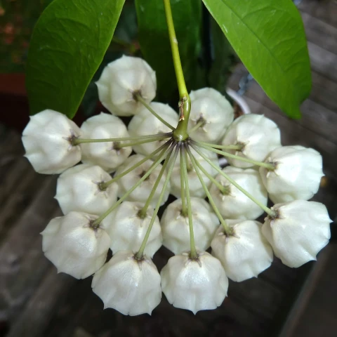Hoya campanulata, Apocynaceae familyasında yer alan Hoya cinsine aittir. Tür adı, çiçeklerin çan (campanula) formunu andırmasından gelmektedir. Doğal yayılış alanı Güneydoğu Asya olup özellikle Borneo, Malezya ve Endonezya’nın nemli tropikal ormanlarında görülür. Doğada çoğunlukla epifitik olarak, ağaç gövdeleri ve dalları üzerinde gelişir. Sarkıcı veya yarı sarılıcı formda yetiştirilebilir. Gövdeler ince, esnek ve uzamaya yatkındır; boğum noktalarından yeni sürgünler oluşturarak zamanla dengeli bir bitki formu meydana getirir. Hoya campanulata’nın yaprakları orta kalınlıkta, etli ve dayanıklı yapıdadır. Yaprak formu eliptik ile oval arasında değişir. Yaprak uçları hafif sivri veya yuvarlak olabilir. Yaprak yüzeyi düzgün, yarı parlak ve ince mumsu bir tabaka ile kaplıdır. Yaprak rengi genellikle orta ile koyu yeşil tonlarındadır ve sağlıklı bireylerde homojen bir görünüm sergiler. Yapraklar gövde üzerinde karşılıklı dizilir. Yeterli ışık koşullarında boğum araları kısa kalır ve bitki kompakt bir yapı kazanır. Düşük ışık seviyelerinde sürgünler uzayabilir ve yaprak dizilimi seyrekleşebilir.