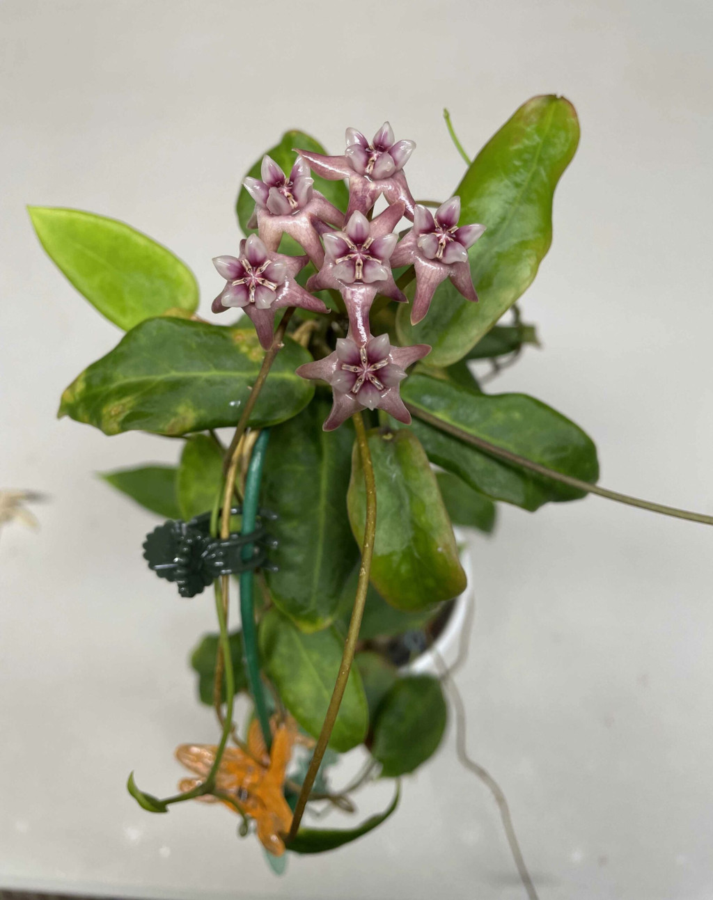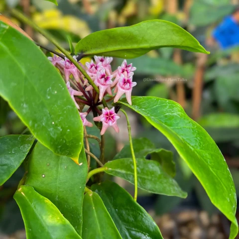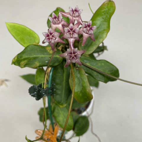Hoya darwinii, uygun bakım koşulları sağlandığında dekoratif çiçekler oluşturur. Çiçekler şemsiye formunda salkımlar halinde gelişir ve yıldız biçimlidir. Taç yapraklar genellikle açık pembe ile krem tonları arasında değişebilir; merkez kısımlar daha koyu renkli olup belirgin bir kontrast oluşturur. Çiçek yüzeyi mumsu yapıdadır ve çiçeklenme döneminde nektar salgılanabilir. Çiçeklenme, ışık düzeyi, sulama düzeni ve bitkinin genel sağlığı ile doğrudan ilişkilidir. Sık yer değişimi ve çevresel koşullardaki ani değişimler tomurcuk dökümüne neden olabilir. Çoğaltma işlemleri genellikle gövde çeliği ile gerçekleştirilir. En az bir boğum içeren sağlıklı bir sürgün kesilerek alınır ve kesik yüzeyin kısa süre kuruması beklenir. Ardından geçirgen bir karışımda köklendirme yapılır. Köklendirme sürecinde aşırı sulamadan kaçınılmalıdır. Gübreleme uygulamaları yalnızca ilkbahar döneminde ve düşük dozlarda yapılmalıdır. Dengeli içerikli, düşük azot oranına sahip besinler tercih edilmelidir. Bu bakım yaklaşımı, Hoya darwinii’nin dengeli gelişimini ve uzun vadeli sağlığını destekler.