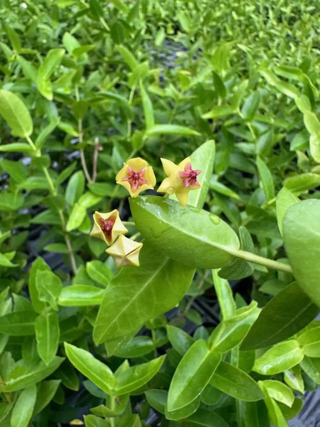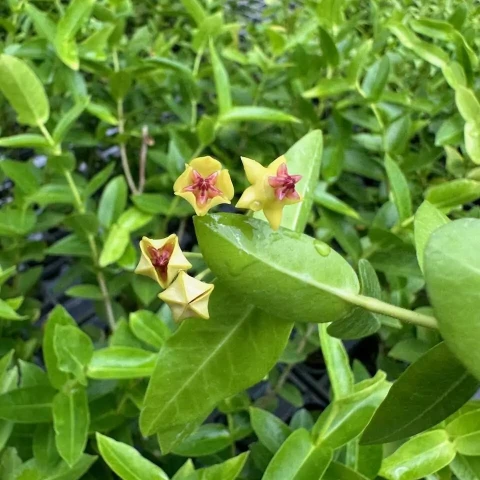 Hoya densifolia, Apocynaceae familyasında yer alan Hoya cinsine ait, özellikle yaprak dizilimi ve çiçek salkımlarının yoğunluğu ile tanınan tropikal bir türdür. Doğal yayılış alanı Güneydoğu Asya olup, başta Filipinler ve Endonezya olmak üzere nemli tropikal orman ekosistemlerinde epifitik yaşam biçimi gösterir. Doğada ağaç gövdeleri ve dalları üzerinde tutunarak gelişen bu tür, sarkıcı veya sarılıcı formda yetiştirilebilir. Gövdeler esnek yapılıdır ve zamanla boğum noktalarından çok sayıda sürgün oluşturarak yoğun bir bitki formu meydana getirir. Hoya densifolia’nın yaprakları karşılıklı dizilimli, eliptik ile oval arasında değişen formdadır. Yaprak dokusu etli ve kalındır; bu yapı bitkinin su depolama kapasitesini artırır. Yaprak yüzeyi genellikle parlak veya yarı parlak olup belirgin bir mumsu tabaka ile kaplıdır. Sağlıklı bireylerde yapraklar gövdeye yakın, sık ve düzenli dizilim gösterir. Tür adında yer alan densifolia ifadesi, yaprakların gövde üzerinde yoğun ve sık dizilimine atıfta bulunur. Düşük ışık koşullarında yaprak aralıkları uzayabilir ve bitkinin kompakt görünümü azalabilir.