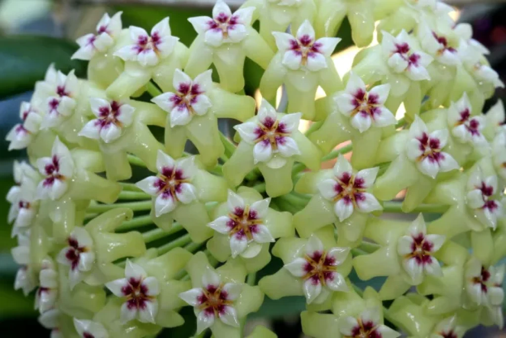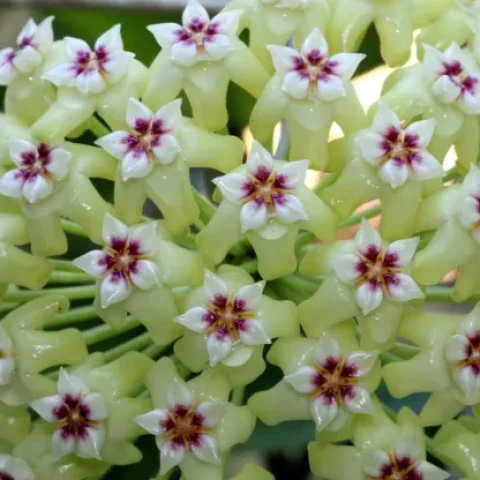 Hoya dolichosparte, Apocynaceae familyasında yer alan Hoya cinsine ait, çiçek morfolojisiyle dikkat çeken tropikal bir türdür. Doğal yayılış alanı Güneydoğu Asya olup, özellikle Tayland, Malezya ve Endonezya çevresindeki nemli tropikal ormanlarda epifitik yaşam biçimi gösterir. Doğada ağaç gövdeleri ve dallarına tutunarak gelişir. Bu sayede sarkıcı veya sarılıcı formda yetiştirilebilir. Gövdeler ince, esnek ve uzamaya yatkındır; boğum noktalarından yeni sürgünler oluşturarak zamanla geniş bir alana yayılabilir. Hoya dolichosparte’nin yaprakları orta kalınlıkta, etli ve dayanıklı yapıdadır. Yaprak formu eliptik ile dar oval arasında değişir. Yaprak uçları çoğunlukla hafif sivri yapıdadır. Yaprak yüzeyi pürüzsüz ve yarı parlak olup ince bir mumsu tabaka ile kaplıdır. Yaprak rengi genellikle koyu yeşil tonlarındadır ve sağlıklı bireylerde homojen bir görünüm sergiler. Yapraklar gövde üzerinde karşılıklı dizilir. Yetersiz ışık koşullarında boğum araları uzayabilir ve yapraklar daha seyrek bir dizilim gösterebilir.