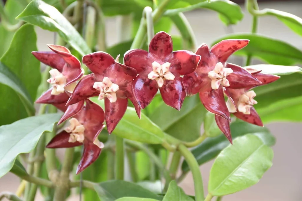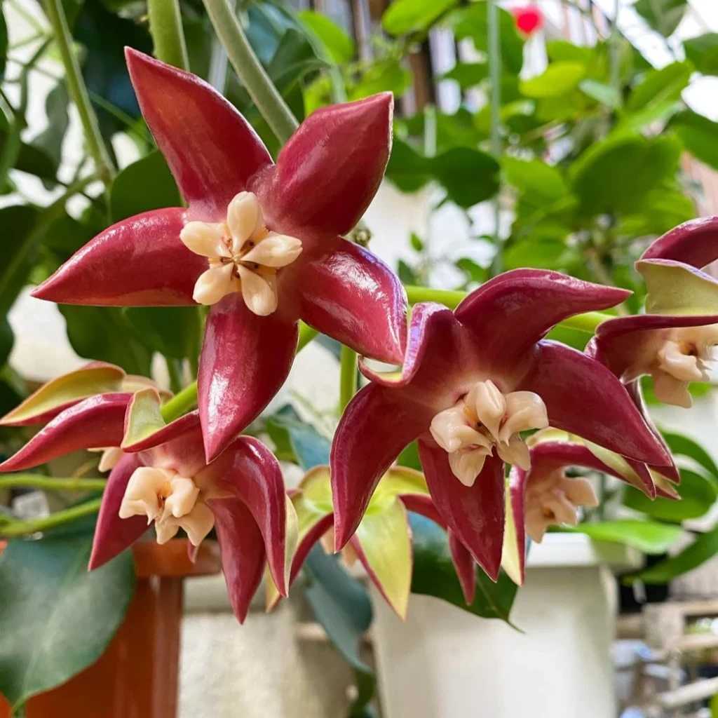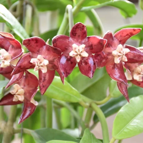 Hoya imperialis’in çiçekleri, türün en dikkat çekici özelliğidir. Çiçekler oldukça iri, yıldız biçimli ve salkım halinde gelişir. Taç yapraklar kalın, balmumsu ve pürüzsüz bir dokuya sahiptir. Renklenme bordo ya da kırmızımsı tonlardadır. Merkez kısımda ise beyaz ya da açık krem renkli, belirgin bir yapı bulunur. Çiçeklerin boyutu ve yoğun renkleri, bu türü Hoya cinsi içinde özel bir konuma taşır. Çiçeklenme, yeterli ışık alan, sağlıklı kök yapısına sahip ve dengeli gelişim gösteren bitkilerde daha düzenli gözlemlenir. Tomurcuklanma döneminde ortam koşullarındaki ani değişiklikler çiçek dökümüne yol açabilir. Çoğaltma işlemleri genellikle gövde çeliği ile yapılır. Çeliklerde en az bir veya iki boğum bulunması tercih edilir. Kesim sonrası kesik yüzeyin kısa süre kurutulması, köklendirme sürecinde çürüme riskini azaltır. Köklendirme döneminde ortam nemli tutulur ancak aşırı sulamadan kaçınılır. Gübreleme uygulamaları yalnızca aktif büyüme dönemlerinde ve düşük dozlarda yapılmalıdır. Aşırı besin uygulamaları, yaprak dokusunda yumuşamaya ve dengesiz gelişime neden olabilir. Bu nedenle Hoya imperialis bakımında dengeli ve kontrollü bir yaklaşım benimsenmelidir.