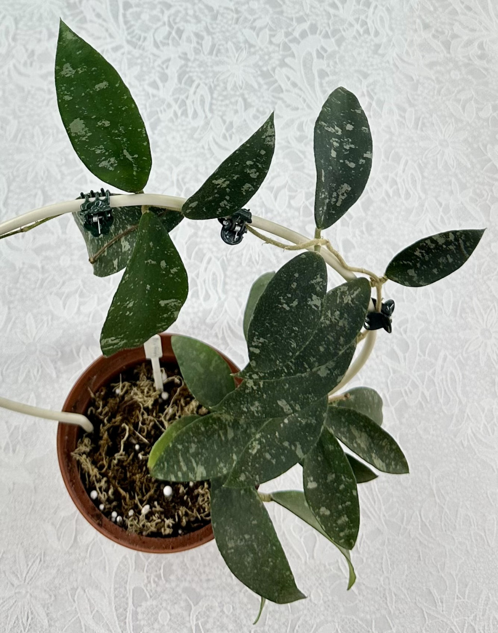 Saksı seçiminde drenaj deliği bulunması zorunludur. Hoya phuwuaensis için kök hacmine oranla aşırı büyük saksılar önerilmez. Geniş saksılar, toprak karışımının daha geç kurumasına neden olabilir. Toprak saksılar, nefes alabilen yapıları sayesinde fazla nemin daha hızlı uzaklaşmasına katkı sağlayabilir. Saksı değişimi, köklerin saksıyı tamamen doldurduğu durumlarda veya karışım yapısının bozulduğu gözlemlendiğinde yapılır. Hoya phuwuaensis’in çiçekleri, Hoya cinsine özgü şemsiye formunda salkımlar halinde gelişir. Çiçekler genellikle yıldız formundadır ve yüzeyleri balmumsu bir dokuya sahiptir. Renklenme çoğunlukla açık tonlardan başlayarak merkezde daha koyu tonlar gösterebilir. Çiçeklerin merkezinde nektar üretimi görülebilir. Çiçeklenme, bitkinin yeterli ışık alması, sağlıklı kök yapısına sahip olması ve genel büyüme dengesinin korunmasıyla doğrudan ilişkilidir. Tomurcuk oluşumu döneminde çevresel koşullarda ani değişiklikler çiçek dökümüne yol açabilir.