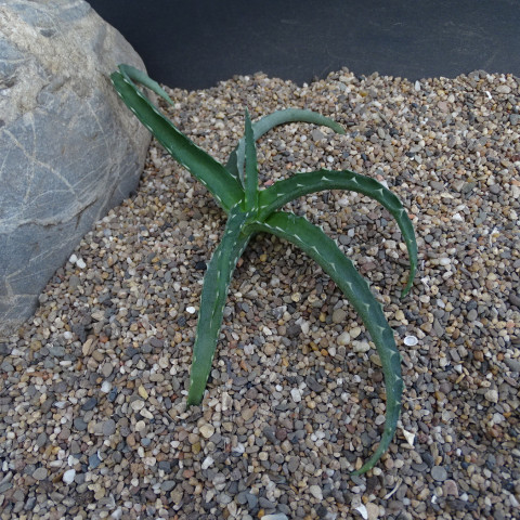 Aloe ambrensis, Asphodelaceae familyasına ait, daha ince yaprak yapısı ve kompakt rozet formu ile dikkat çeken Aloe türlerinden biridir. Bu tür, doğal olarak Madagaskar’a özgüdür ve genellikle kayalık alanlar, açık ormanlık bölgeler ve iyi drene olan topraklarda gelişim gösterir. Bitki çoğunlukla yere yakın, dengeli bir rozet yapısı oluşturur. Gövde çoğu bireyde belirgin değildir ya da oldukça kısa kalır. Uygun koşullarda sınırlı sayıda yan sürgün oluşturarak küçük kümeler meydana getirebilir. Aloe ambrensis’in yaprakları uzun, dar ve hafif kavisli bir formdadır. Etli yapı korunmakla birlikte, yapraklar bazı iri Aloe türlerine göre daha ince ve esnektir. Yaprak rengi genellikle açık yeşil ile orta yeşil tonları arasında değişir. Yüksek ışık ve çevresel stres koşullarında yaprak yüzeyinde hafif kızarma veya sarımsı tonlar oluşabilir. Yaprak kenarlarında düzenli aralıklarla yerleşmiş küçük dikenimsi dişler bulunur. Bu dişler türün karakteristik özelliklerinden biridir. Yaprak yüzeyi genellikle pürüzsüzdür ve ince bir mumsu tabaka ile kaplıdır. Uzun süreli aşırı nem koşulları, yaprak dokusunun bozulmasına neden olabilir.