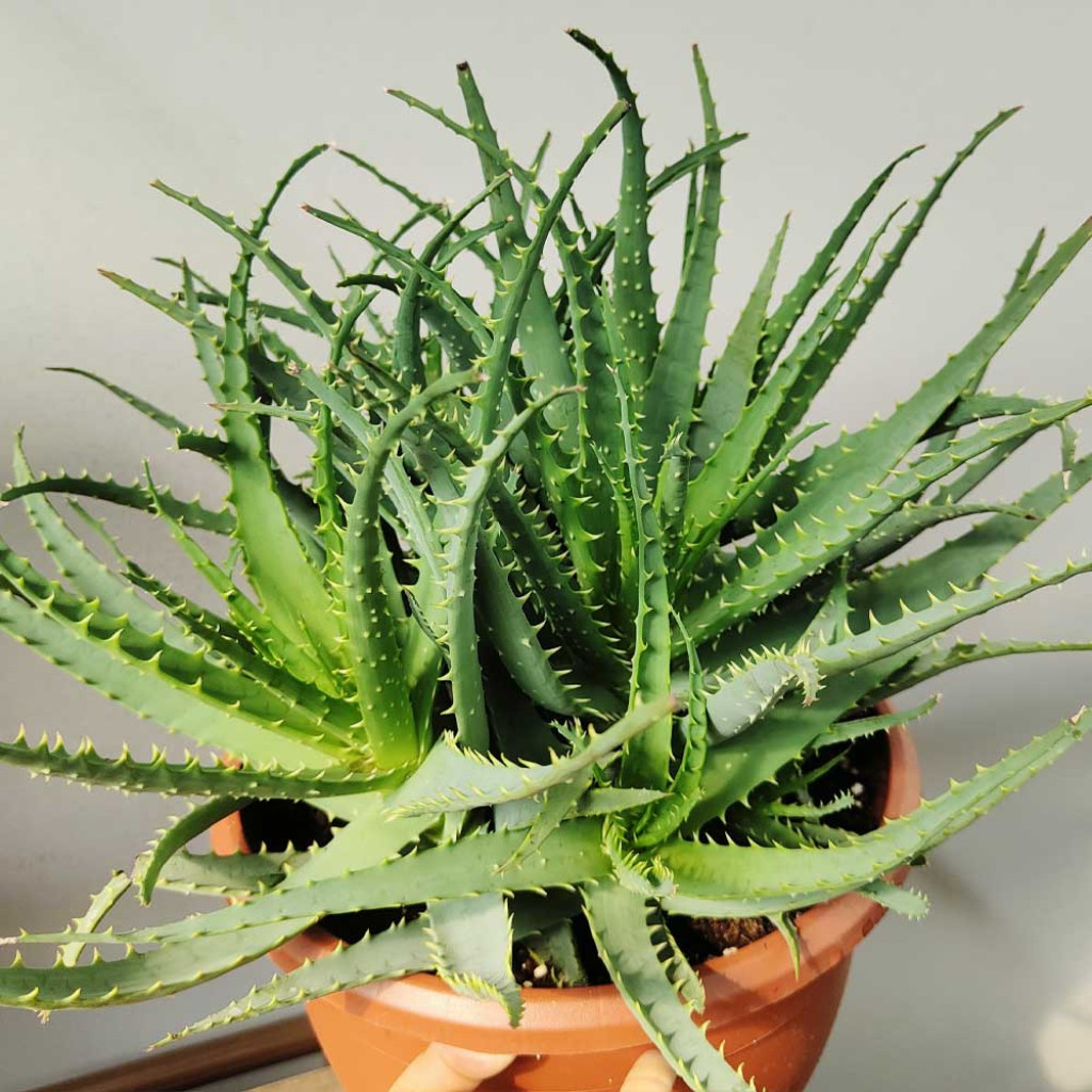 Aloe arborescens, Aloe cinsi içerisinde çalı formunda büyüme gösteren ve hızlı gelişimi ile öne çıkan sukulent türlerinden biridir. Güney Afrika kökenli olan bu tür, doğal ortamında geniş alanlara yayılabilen, çok dallı ve odunsu gövdeler geliştirebilen bir yapıya sahiptir. Aloe arborescens, genç dönemlerinde rozet formu ile başlasa da zamanla gövde uzaması ve dallanma ile birlikte daha karmaşık bir form kazanır. Bu özellik, onu klasik rozet Aloe türlerinden ayırır. Yaprakları uzun, dar ve hafif kavisli yapıdadır. Yaprak yüzeyi mat yeşil tonlardadır ve kenar boyunca belirgin, düzenli dişler bulunur. Bu dişler genellikle açık renkli olup, bazı koşullarda hafif kızarıklık gösterebilir. Yaprak dokusu etlidir ve su depolama kapasitesi yüksektir.