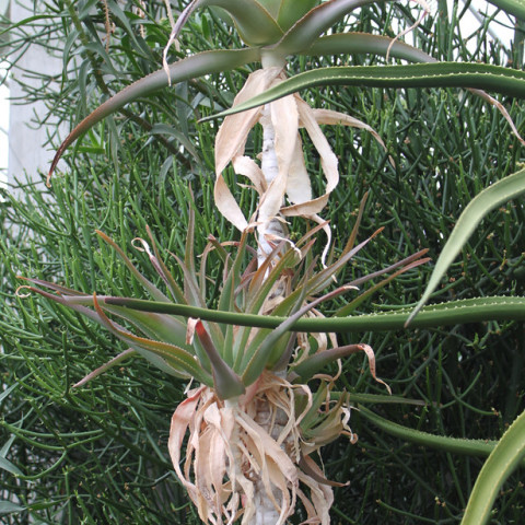 Aloe ballyi, Asphodelaceae familyasına ait, Doğu Afrika kökenli ve diğer Aloe türlerinden farklı olarak daha ağaçsı gelişim gösterebilen bir sukulent türüdür. Bu tür, zamanla belirgin bir gövde oluşturarak yükselir ve üst kısmında rozet şeklinde yaprak dizilimi sergiler. Doğal habitatında kurak ve yarı kurak bölgelerde gelişim gösterir. Gövde yapısı yaşlandıkça odunsu bir karakter kazanır ve alt kısımlarda eski yaprak izleri gözlemlenebilir. Aloe ballyi, form olarak klasik rozet Aloe’lerden ayrılarak daha dikey ve heykelsi bir görünüm oluşturur.