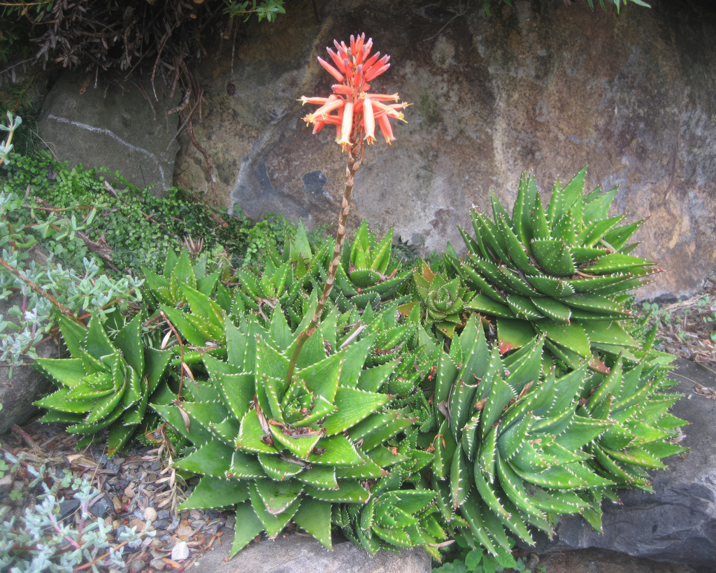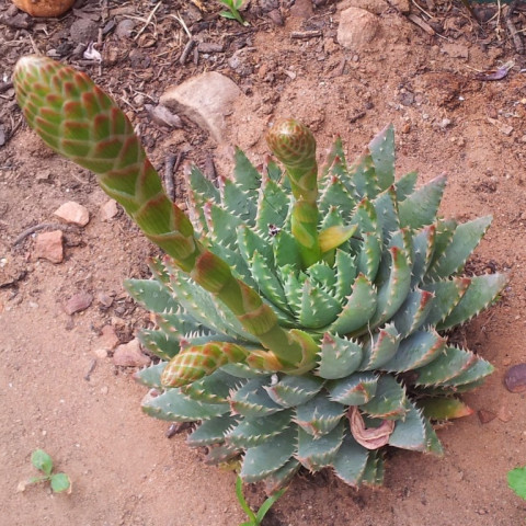 Aloe brevifolia, Güney Afrika kökenli, kompakt yapılı ve yoğun şekilde yavru veren bir Aloe türüdür. Doğal habitatında kurak ve iyi drene olan topraklarda yayılım gösterir. Zamanla genişleyen kümeler oluşturarak yer örtücü form kazanır ve bu özelliği onu hem koleksiyon hem de peyzaj açısından değerli kılar. Düşük boylu yapısı ve koloni oluşturma eğilimi, türün en karakteristik özelliklerinden biridir. Bitki, kısa ve kalın yapraklardan oluşan sıkı rozetler geliştirir. Yapraklar üçgensi formda olup uç kısımlara doğru sivrilir. Kenarlarında düzenli dizilmiş küçük dikenler bulunur ve yaprak yüzeyinde ince kabartılar görülebilir. Renk genellikle mavi-yeşil tonlarındadır ancak güçlü ışık ve kuraklık koşullarında kırmızı veya turuncuya dönebilen stres pigmentasyonu gözlemlenir. Bu renk değişimi sağlıklı bir adaptasyon tepkisidir ve türün dekoratif değerini artırır.