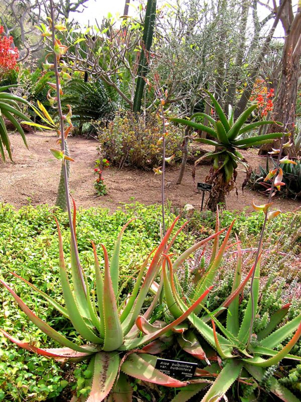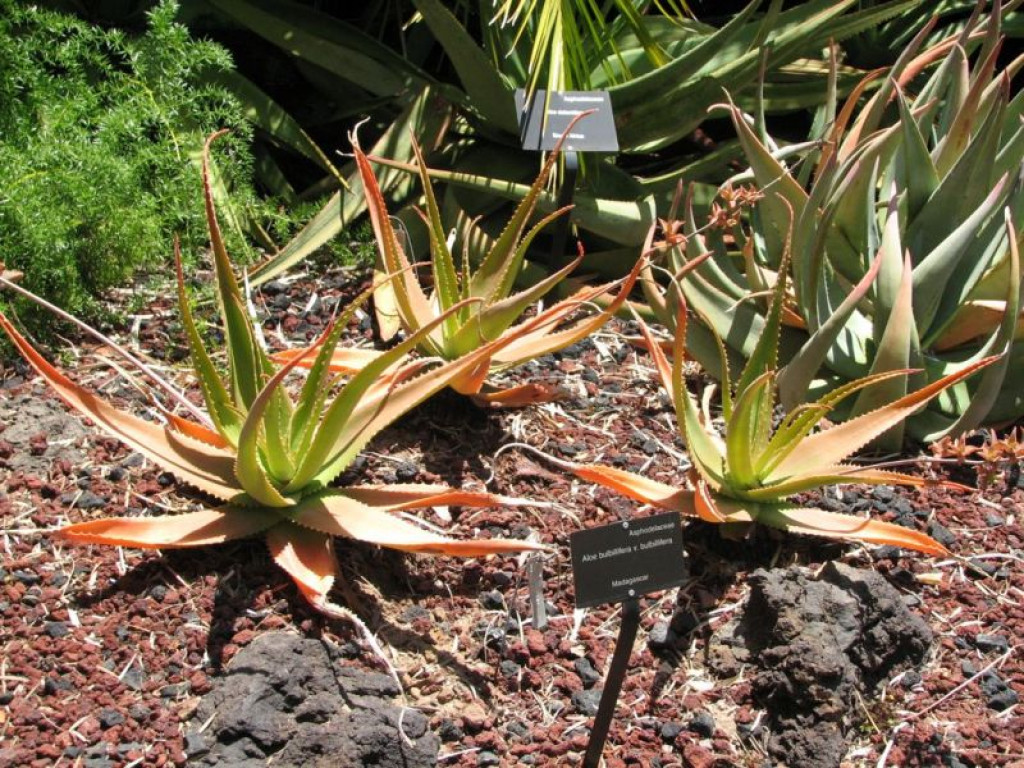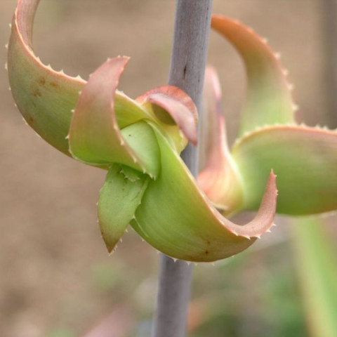 Aloe bulbillifera, Asphodelaceae familyasına ait, rozet formunda gelişim gösteren ve özellikle üreme biçimiyle dikkat çeken bir Aloe türüdür. Bu tür, doğal olarak Afrika’nın sıcak ve yarı kurak bölgelerinde yayılım gösterir. Habitatında genellikle taşlı, geçirgen ve düşük organik madde içeren topraklarda gelişir. Kuraklık koşullarına uyum sağlayabilen bu bitki, suyu yapraklarında depolayarak uzun süre susuzluğa dayanabilir. Türün en belirgin özelliklerinden biri, çiçek sapı üzerinde küçük bitkicikler oluşturabilmesidir. Aloe bulbillifera’nın yaprakları etli, uzun ve dar yapıdadır. Yapraklar rozet merkezinden dışa doğru açılarak simetrik bir dizilim oluşturur. Uç kısımlara doğru incelen ve sivrilen bir form görülür. Yaprak yüzeyi genellikle düz ve hafif parlaktır. Renk tonları açık yeşilden gri-yeşile kadar değişebilir. Yoğun ışık altında yaprak kenarlarında kızarıklık veya hafif bronz tonlar oluşabilir. Yaprak kenarlarında küçük, düzenli ve keskin dişler bulunur. Bu dişler hem türün karakteristik özelliğidir hem de doğal ortamda koruyucu bir yapı görevi görür.