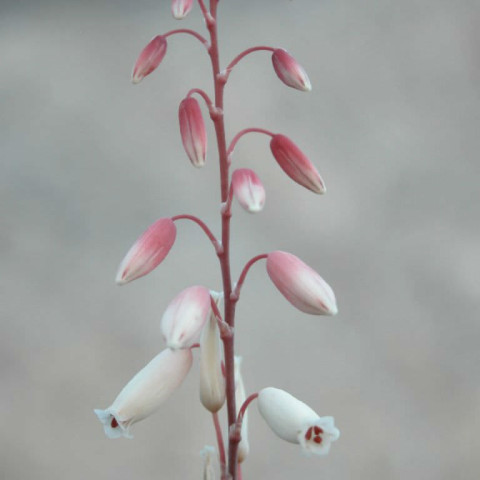 Sulama düzeninde ana prensip, toprağın tamamen kurumasını beklemektir. Yüzeyin kuru olması yeterli değildir; saksı içindeki tüm karışımın kuru olması gerekir. Sürekli nemli kalan kök ortamı, bu tür için en büyük risk faktörlerinden biridir. Sulama sırasında suyun rozet merkezinde birikmemesine dikkat edilmelidir. Yaprak aralarında kalan su, düşük hava sirkülasyonu olan ortamlarda mantari problemlere yol açabilir. Aloe calcairophila’nın çiçeklenmesi, uygun bakım koşullarında gerçekleşebilir ancak bu türde çiçeklenme diğer Aloe türlerine göre daha sınırlı gözlemlenebilir. Bitki merkezinden yükselen ince bir çiçek sapı oluşturur. Bu sap üzerinde tüp formunda, açık renkli çiçekler gelişir. Çiçekler salkım şeklinde dizilir ve Aloe cinsine özgü yapıdadır.