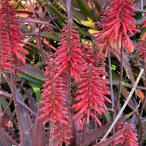 Sulama düzeninde temel kural, toprağın tamamen kurumasını beklemektir. Yüzey kuruluğu yanıltıcı olabilir; alt katmanların da tamamen kurumuş olması gerekir. Sürekli nemli kalan kök ortamı çürüme riskini artırır. Sulama sırasında suyun rozet merkezinde birikmemesine dikkat edilmelidir. Yaprak aralarında kalan su, özellikle düşük hava sirkülasyonu olan ortamlarda mantari problemlere yol açabilir. Aloe cameronii’nin çiçeklenmesi genellikle kış sonu ve ilkbahar döneminde gerçekleşir. Bitki merkezinden yükselen ince ve uzun çiçek sapları oluşturur. Bu saplar üzerinde tüp formunda, çoğunlukla parlak kırmızı veya turuncu tonlarda çiçekler gelişir. Çiçekler salkım şeklinde dizilir ve bitkinin genel görünümünü tamamlayan belirgin bir kontrast oluşturur. Çiçeklenme, ışık miktarı ve bitkinin genel sağlığı ile doğrudan ilişkilidir.