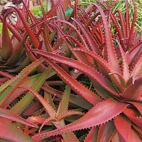 Aloe cameronii, Asphodelaceae familyasına ait, özellikle kızıl tonlara dönebilen yaprak rengiyle öne çıkan bir Aloe türüdür. Doğal olarak Afrika’nın kurak ve yarı kurak bölgelerinde yayılım gösterir. Bu tür, yüksek ışık ve sıcaklık altında belirgin renk değişimi gösterebilmesi nedeniyle peyzaj uygulamalarında ve sukulent koleksiyonlarında dikkat çeken türler arasında yer alır. Dayanıklı yapısı sayesinde zorlu çevresel koşullara uyum sağlayabilir. Aloe cameronii’nin yaprakları uzun, dar ve yayvan bir rozet formunda dizilir. Yaprak yüzeyi düz ve etlidir, su depolama kapasitesi yüksektir. Türün en belirgin özelliği yaprak rengindeki değişimdir. Düşük ışık ve daha nemli koşullarda yapraklar açık yeşil tonlarda kalırken; yüksek ışık, sıcaklık ve sınırlı sulama koşullarında bakır, turuncu ve kırmızı tonlara dönüşebilir. Bu renklenme, bitkinin stres tepkisi olarak gelişir ve türün karakteristik görünümünü oluşturur. Yaprak kenarlarında küçük, düzenli ve keskin dişler bulunur.