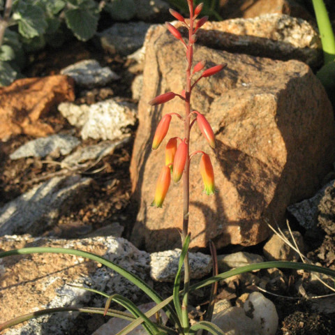 Aloe cannellii, Asphodelaceae familyasına ait, alışılmış Aloe formundan farklı olarak ince ve çimsi yaprak yapısıyla dikkat çeken nadir türlerden biridir. Doğal yayılım alanı genellikle kayalık ve çayırlık bölgeler olup, yüksek drenajlı ve mineral ağırlıklı topraklarda gelişim gösterir. Bu tür, klasik rozet formundan ziyade daha gevşek ve dağınık bir büyüme yapısına sahiptir. Doğal ortamında çoğunlukla diğer ot formundaki bitkiler arasında kamufle olacak şekilde gelişir. Aloe cannellii’nin yaprakları oldukça ince, uzun ve esnek yapıdadır. Yapraklar genellikle dar şeritler halinde uzar ve rozet yapısı belirgin olsa da kompakt değildir. Bu yapı, bitkinin çevresel koşullara uyum sağlamasına yardımcı olur. Yaprak yüzeyi düz ve ince dokuludur, su depolama kapasitesi diğer Aloe türlerine kıyasla daha sınırlıdır. Renk genellikle açık yeşil tonlardadır. Yaprak kenarlarında çok küçük ve ince dişler bulunabilir, ancak bu dişler çoğu zaman belirgin değildir.