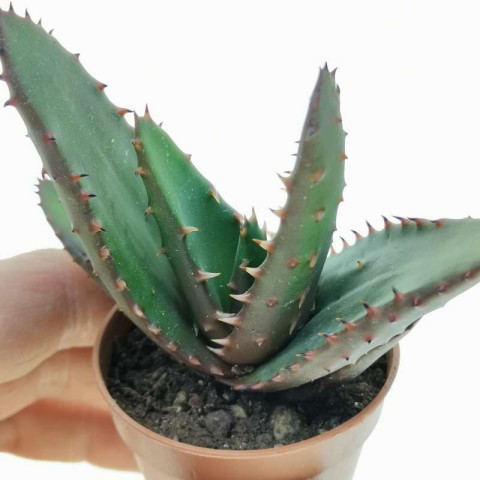 Aloe compressa var. paucituberculata, Madagaskar kökenli Aloe compressa türünün dikkat çekici bir varyetesidir ve özellikle yaprak yüzeyindeki küçük tüberküller (kabarcık benzeri çıkıntılar) ile ayırt edilir. Bu varyete, standart formdan daha karakterli ve kontrastlı bir görünüme sahiptir. Yapraklar dar, uzun ve rozet etrafında düzenli şekilde dizilir ancak klasik compressa kadar sıkı ve üst üste binmiş bir yapı oluşturmaz. Daha açık rozet yapısı, bitkiye daha “yayılmış” bir siluet kazandırır. Yaprak rengi genellikle yeşil tonlarındadır ancak ışık yoğunluğuna bağlı olarak ciddi renk değişimi gösterir. Yüksek ışık ve hafif stres koşullarında yaprak kenarlarında ve yüzeyinde kırmızı, bordo ve mor tonlar oluşur. Bu renklenme, bitkinin en estetik özelliklerinden biridir ve koleksiyon değeri açısından önemlidir. Yaprak kenarlarında bulunan dikenler belirgin olup genellikle kırmızımsı tonlarla kontrast oluşturur.