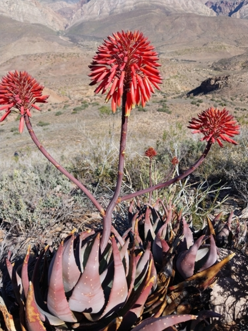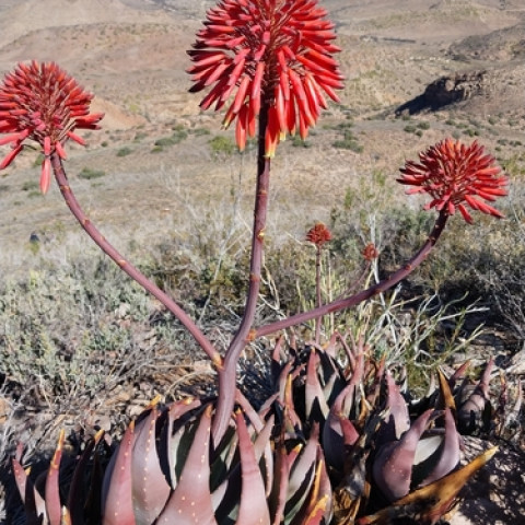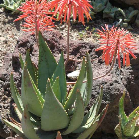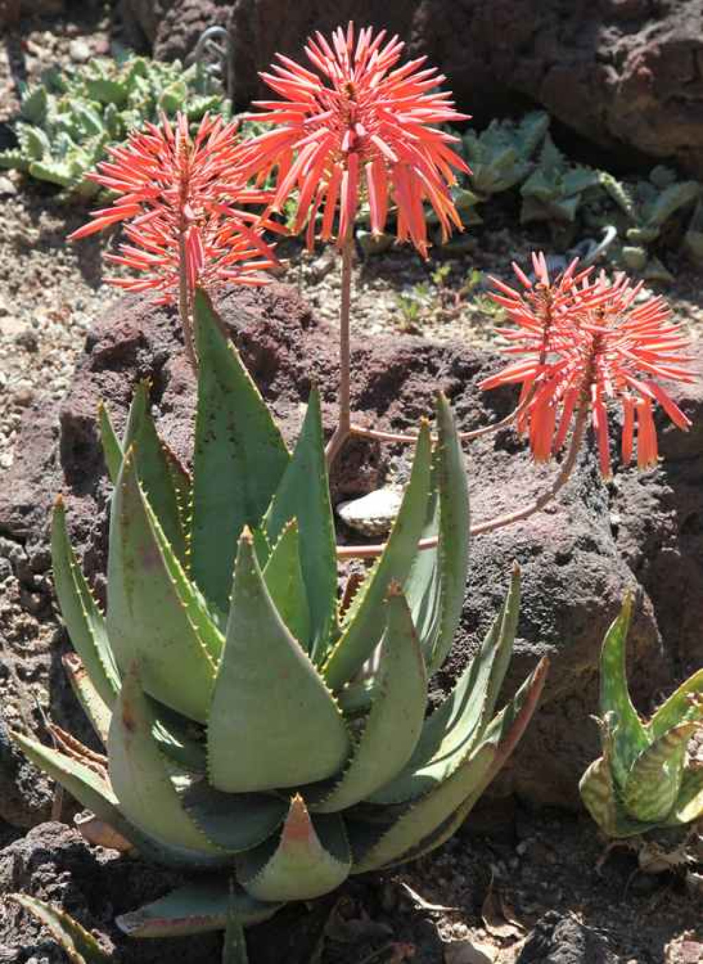 Aloe comptonii, Güney Afrika kökenli, küçük-orta boyutlu yapısıyla kompakt bir Aloe türüdür. Doğal ortamında kayalık, iyi drenajlı ve genellikle yarı kurak bölgelerde yetişir. Bu tür, fazla yayılmadan tek rozet halinde büyüme eğilimindedir ve koleksiyonluk Aloe’lar arasında dengeli formu ile öne çıkar. Yapraklar üçgensi, orta kalınlıkta ve rozet etrafında simetrik şekilde dizilidir. En belirgin özelliği, yaprak yüzeyinde yer alan açık renkli beneklerdir. Bu benekler genç bitkilerde daha belirgin olup yaşla birlikte azalabilir. Yaprak rengi genellikle yeşil tonlarında olsa da, yoğun ışık altında kızarma veya bronzlaşma görülebilir. Kenarlarda küçük, düzenli dişler bulunur ve bu dişler genellikle açık kahverengi veya sarımsı tonlardadır.