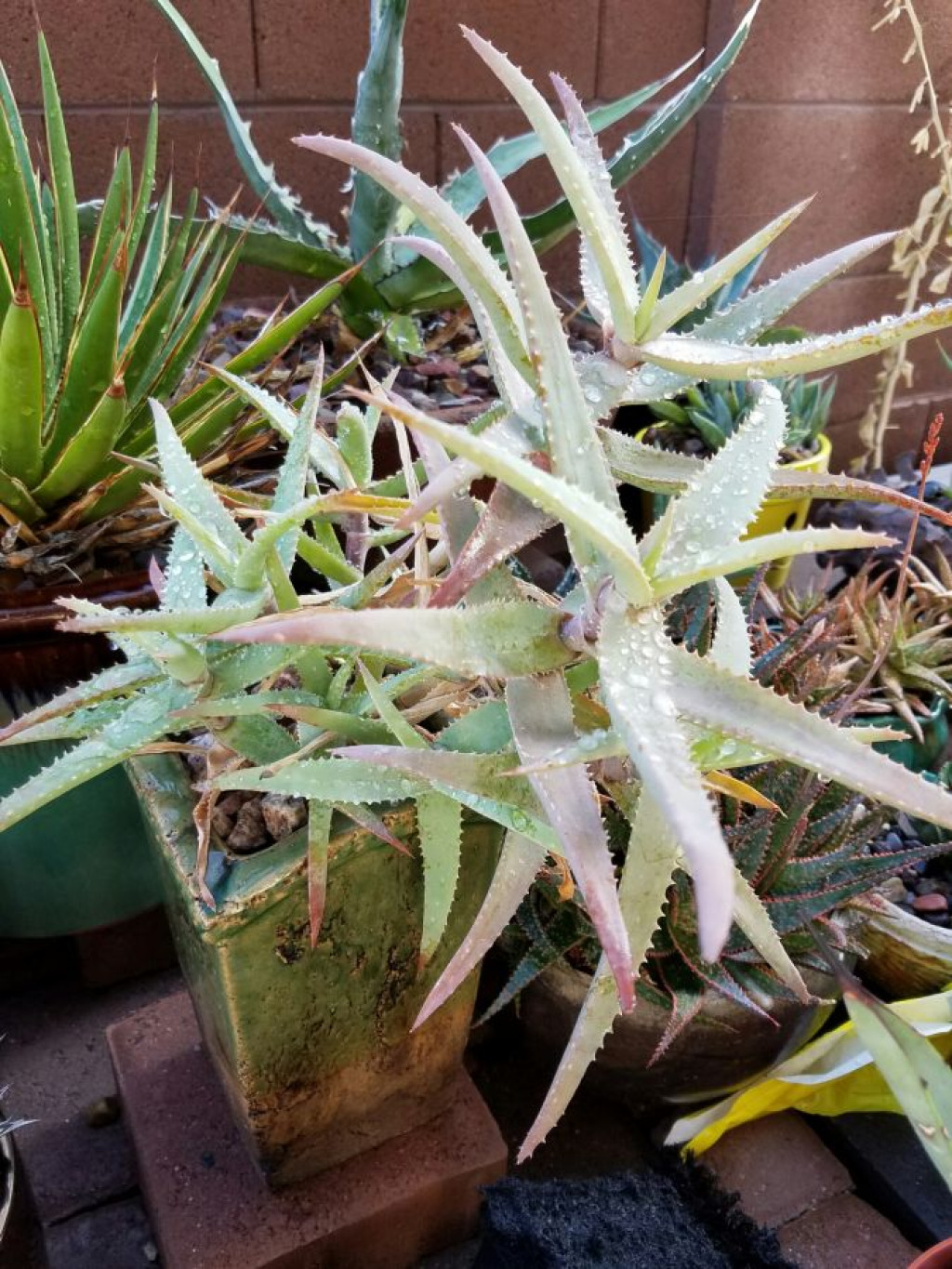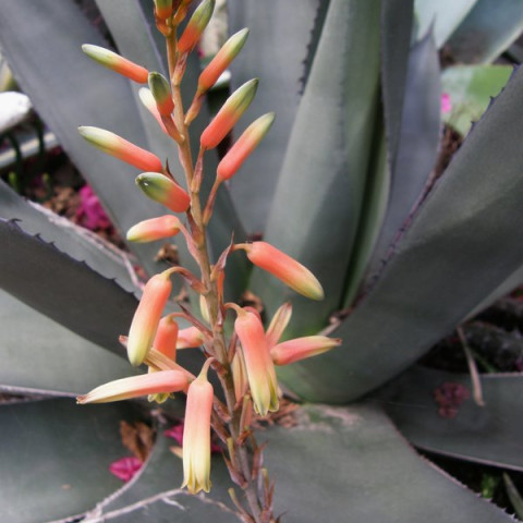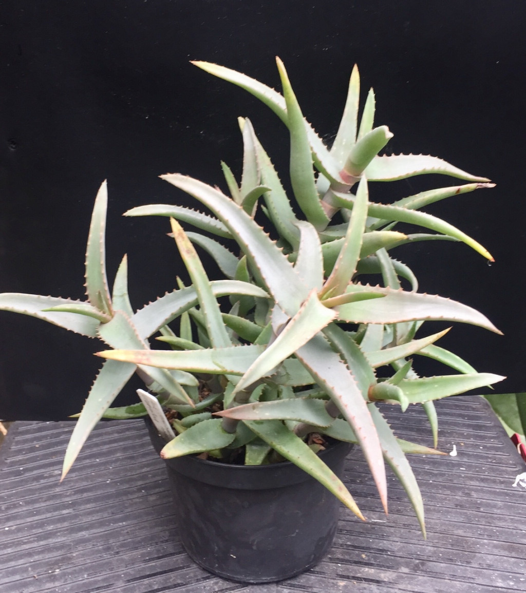 Aloe cremnophila, Asphodelaceae familyasına ait, Doğu Afrika kökenli ve özellikle kayalık, sarp yamaçlara adapte olmuş bir Aloe türüdür. Tür ismindeki “cremnophila” ifadesi, “uçurum seven” anlamına gelir ve bu bitkinin doğal habitatını doğrudan tanımlar. Doğada genellikle dik kaya yüzeylerinde, çok sınırlı toprak bulunan alanlarda gelişim gösterir. Bu adaptasyon, bitkinin hem kök yapısında hem de büyüme formunda belirgin şekilde gözlemlenir. Gövde zamanla uzayabilir ve bitki yarı sarkıcı ya da yayılıcı bir form kazanabilir. Uygun koşullarda geniş alanlara yayılan, yer yer yoğun kümeler oluşturan bir gelişim sergileyebilir. Aloe cremnophila yaprakları dar, uzun ve esnek yapıdadır. Yapraklar rozet formunda başlasa da zamanla gövde uzadıkça bu yapı gevşer ve daha serbest bir dağılım gösterir. Yaprak yüzeyi mat, çoğunlukla gri-yeşil tonlarındadır. Yüksek ışık ve stres koşullarında hafif morumsu veya bronz tonlar gözlemlenebilir. Yaprak kenarlarında küçük ve düzenli dikenler bulunur. Bu dikenler genellikle açık renkli olup yaprak yüzeyiyle belirgin bir kontrast oluşturmaz. Yaprak dokusu su depolama kapasitesine sahiptir ancak ince yapısı nedeniyle bazı kalın yapraklı Aloe türlerine kıyasla daha hızlı su kaybı yaşanabilir.