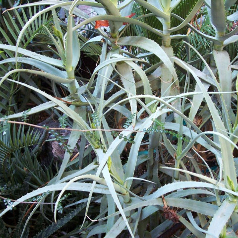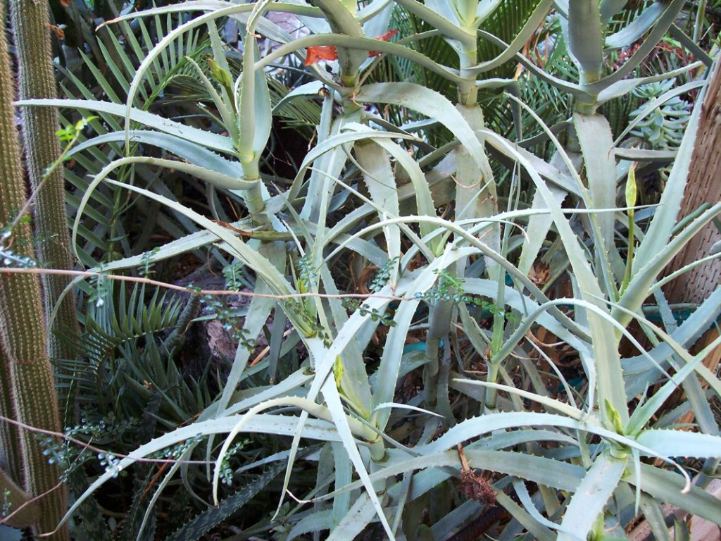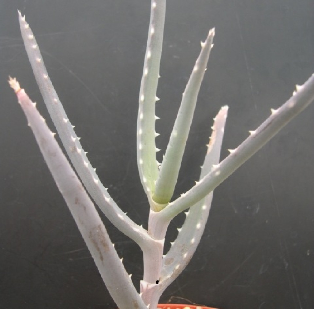 Aloe decaryi, Asphodelaceae familyasına ait, Madagaskar kökenli ve oldukça karakteristik yaprak formuna sahip bir Aloe türüdür. Doğal habitatında genellikle kurak, taşlık ve iyi drenajlı alanlarda gelişir. Bu tür, rozet formundan ziyade daha dağınık ve açık büyüme yapısıyla dikkat çeker. Gövde kısa kalabilir veya zamanla uzayarak yarı yayılıcı bir form oluşturabilir. Aloe decaryi, uygun koşullarda yan sürgünler vererek kümelenme eğilimi gösterebilir ancak büyüme hızı genellikle orta seviyededir. Aloe decaryi yaprakları ince, uzun ve kıvrımlı yapıdadır. Yapraklar düz bir rozet yerine daha serbest ve düzensiz bir açıyla gelişir. Bu durum bitkiye doğal ve hafif dağınık bir görünüm kazandırır. Yaprak yüzeyi genellikle mat olup gri-yeşil tonlar hakimdir. Çevresel koşullara bağlı olarak yapraklarda hafif morumsu veya bronz renklenmeler oluşabilir. Yaprak kenarları boyunca küçük ve düzenli dikenler bulunur. Bu dikenler genellikle açık renkli olup yaprak yüzeyi ile belirgin bir kontrast oluşturmaz. Yaprak dokusu su depolama kapasitesine sahiptir ancak ince yapısı nedeniyle su kaybı bazı kalın yapraklı Aloe türlerine göre daha hızlı gerçekleşebilir.