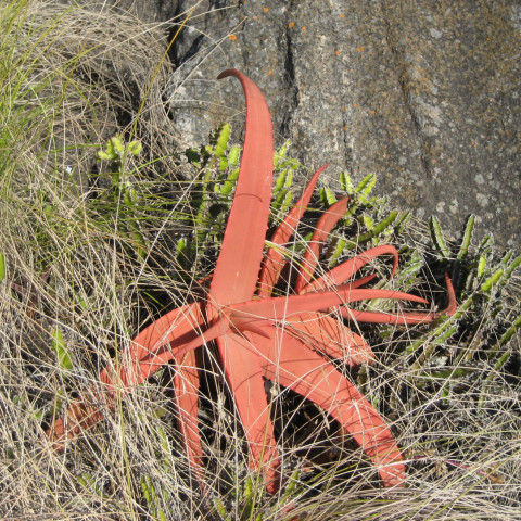 Aloe decurva, Asphodelaceae familyasına ait, Doğu Afrika kökenli ve özellikle geniş, aşağı doğru kıvrılan yaprakları ile dikkat çeken bir Aloe türüdür. Doğal habitatında genellikle kayalık, iyi drenajlı ve açık alanlarda gelişim gösterir. Bu tür, zamanla belirgin bir gövde oluşturabilen ve yaşlandıkça daha hacimli bir görünüm kazanan Aloe türleri arasında yer alır. Genellikle tek rozet halinde gelişir, ancak uygun koşullarda sınırlı sayıda yan sürgün oluşturabilir. Aloe decurva yaprakları uzun, geniş ve etli yapıdadır. Yapraklar rozet merkezinden çıkar ve belirgin şekilde dışa doğru yayılıp aşağıya doğru kıvrılır. Bu kıvrımlı yapı, türün en ayırt edici özelliklerinden biridir. Yaprak yüzeyi genellikle düz ve hafif parlak olabilir. Renkleri çoğunlukla yeşil tonlarında olup, yoğun ışık ve çevresel stres koşullarında kırmızı, turuncu veya bronz tonlara dönüşebilir. Yaprak kenarları boyunca düzenli aralıklarla dizilmiş küçük dikenler bulunur. Bu dikenler genellikle kırmızımsı tonlardadır ve yaprak kenarlarını belirgin hale getirir. Yaprak dokusu yüksek su depolama kapasitesine sahiptir.