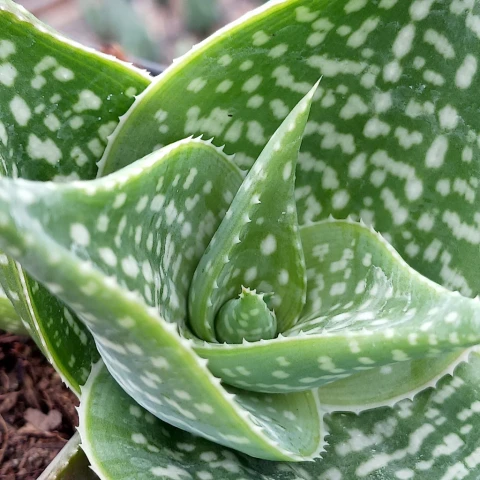 Aloe deltoideodonta, Asphodelaceae familyasına ait, Madagaskar kökenli ve kompakt rozet formu ile öne çıkan bir Aloe türüdür. Doğal habitatında genellikle kurak, taşlık ve iyi drenajlı alanlarda gelişim gösterir. Bu tür, bodur ve yoğun rozet yapısıyla dikkat çeker. Uygun koşullarda zamanla yan sürgünler oluşturarak kümeler halinde büyüyebilir. Büyüme hızı genellikle yavaştır ve bu nedenle saksı yetiştiriciliğine oldukça uygundur. Aloe deltoideodonta yaprakları kısa, geniş tabanlı ve uçlara doğru daralan üçgensi yapıdadır. Yapraklar sıkı bir rozet oluşturacak şekilde merkezden düzenli olarak çıkar. Yaprak yüzeyi belirgin şekilde beneklidir; açık renkli küçük lekeler yeşil zemin üzerinde dağınık şekilde yer alır. Bu desen, türün ayırt edici özelliklerinden biridir. Yaprak rengi genellikle yeşil ile gri-yeşil arasında değişir. Yoğun ışık altında yaprak kenarlarında hafif kırmızımsı tonlar oluşabilir. Yaprak kenarları boyunca küçük ve düzenli dikenler bulunur. Bu dikenler genellikle açık kahverengi veya kırmızımsı tonlardadır. Yaprak dokusu etlidir ve su depolama kapasitesi yüksektir.
