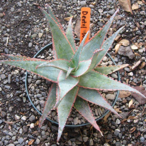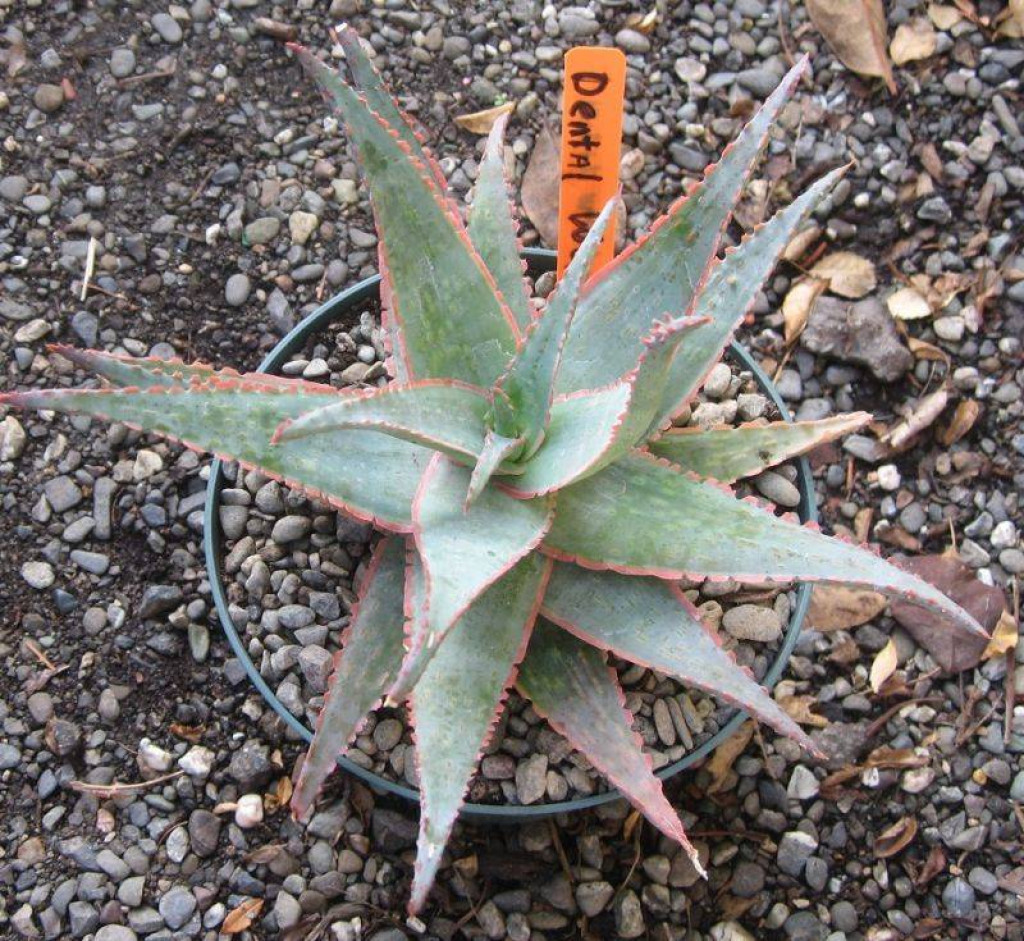 Aloe ‘Dental Work’, dekoratif görünümü, belirgin dişli yaprak kenarları ve kompakt rozet formu ile dikkat çeken melez Aloe kültivarlarından biridir. Ana türleri bilinmemektedir. Adını, yaprak çevresinde sıralanan keskin dişlerden alır. Koleksiyon bitkisi olarak yetiştirilen bu aloe, uygun bakım koşulları sağlandığında uzun ömürlü ve gösterişli bir sukulent haline gelir. Saksıda yetiştirilmeye son derece uygundur ve güçlü yapısı sayesinde doğru koşullarda istikrarlı gelişim gösterir. Özellikle sıra dışı yaprak formu nedeniyle aloe meraklılarının ilgisini çeken özel çeşitlerden biri olarak değerlendirilir. Aloe ‘Dental Work’ yaprakları kalın, etli ve su depolayan yapıdadır. Bu özellik, kurak dönemlere dayanıklılık kazandırır. Yapraklar merkezden çıkarak simetrik bir rozet oluşturur. Renk çoğunlukla gri-yeşil, mat yeşil ya da hafif maviye çalan tonlarda görülür. Güçlü ışık altında yaprak kenarlarında pembemsi, kızıl veya turuncuya yakın tonlanmalar gelişebilir. Bu renklenme çoğu zaman sağlıklı büyümenin doğal sonucudur. Yaprak kenarındaki dişler sert ve belirgindir. Uç kısımlar sivri yapıdadır. Sağlıklı örneklerde yapraklar diri, sık dizilmiş ve dengeli duruşludur. Yetersiz ışık alan bitkilerde ise yaprak araları açılabilir, form gevşeyebilir ve bitki estetik görünümünü kaybedebilir.
