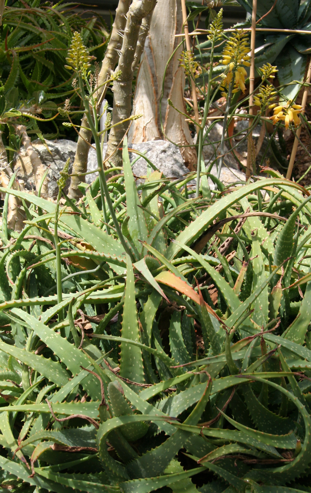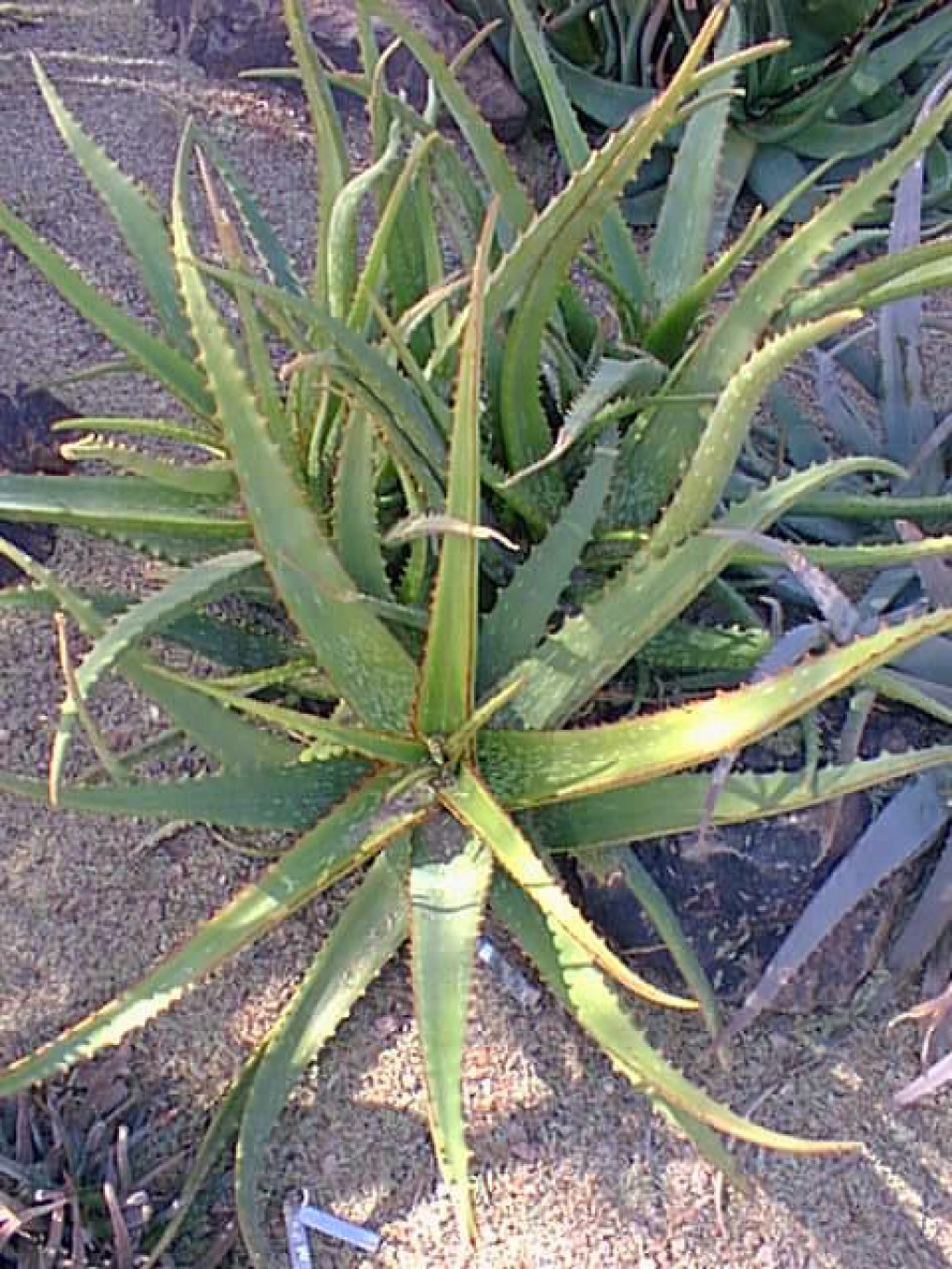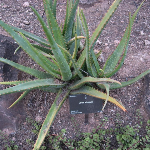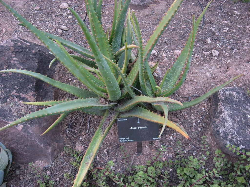 Aloe deserti, kurak ve yarı kurak bölgelere adapte olmuş, dayanıklı yapısı ile bilinen Aloe türlerinden biridir. Doğal habitatında yüksek sıcaklık, yoğun güneş ışığı ve sınırlı su koşullarına uyum sağlamıştır. Bu nedenle kültür ortamında da düşük bakım ihtiyacı ile yetiştirilebilen bir sukulenttir. Bitki, rozet formunda gelişir ve zamanla genişleyerek yatay alanda yayılım gösterebilir. Aloe deserti yaprakları uzun, kalın ve etli yapıdadır. Yaprak yüzeyi genellikle açık yeşil ile zeytin yeşili arasında değişen tonlara sahiptir. Yüzeyde düzensiz dağılmış açık renkli beneklenmeler görülebilir. Bu benekler bitkiye doğal bir doku kazandırır. Yaprak kenarlarında belirgin, düzenli ve sert dişler bulunur. Bu dişli yapı, bitkinin hem fiziksel korunmasını sağlar hem de Aloe cinsinin karakteristik özelliklerinden biridir. Yapraklar genellikle geniş açıyla açılarak rozetin çevresine yayılır ve güçlü bir form oluşturur.