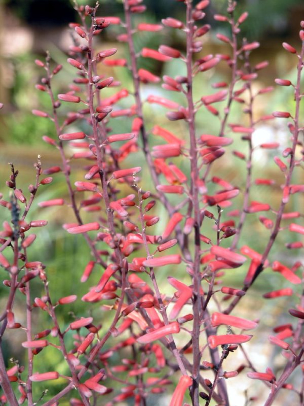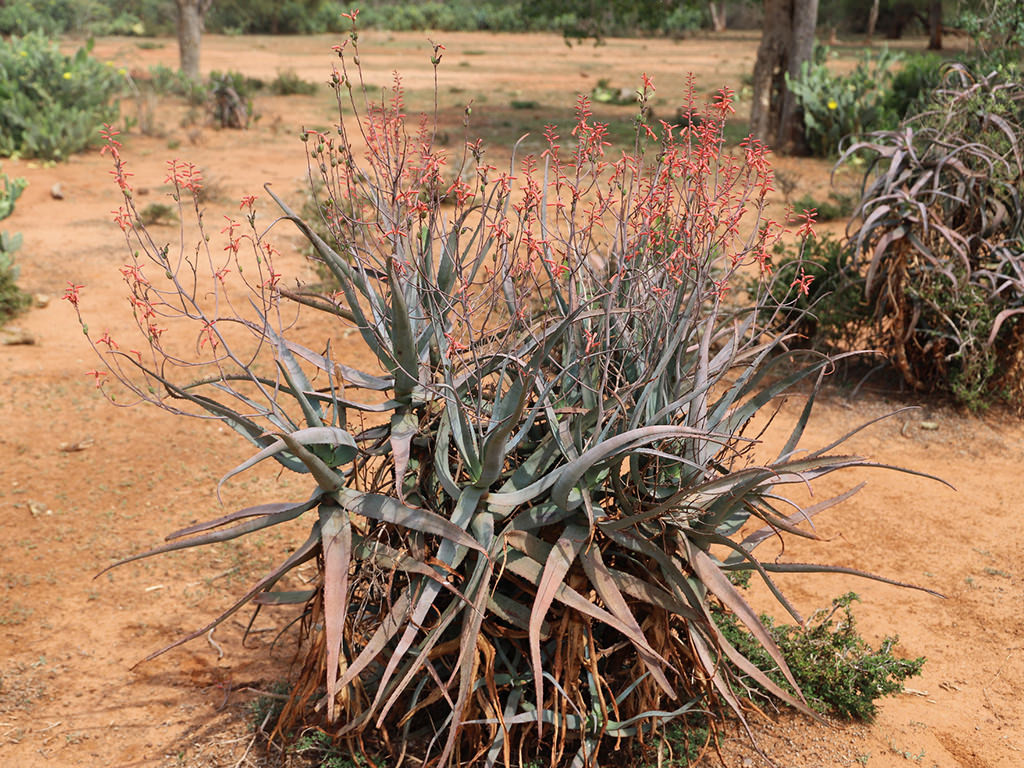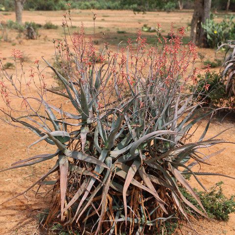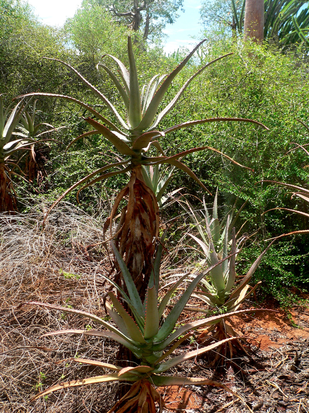 Aloe divaricata, özellikle Madagaskar’a özgü, dallanma eğilimi gösteren ve çalı formunda gelişebilen Aloe türlerinden biridir. Bu tür, klasik rozet formundan farklı olarak zamanla odunsu gövdeler oluşturarak yukarı ve yanlara doğru genişleyen bir yapı kazanır. Kurak ve yarı kurak bölgelerde doğal olarak yetişir ve bu nedenle su tutma kapasitesi yüksek, dayanıklı bir yapıya sahiptir. Aloe divaricata yaprakları uzun, dar ve hafif kıvrımlı formdadır. Yapraklar gövde uçlarında rozetler halinde toplanır ancak bitki büyüdükçe bu rozetler dallanarak çok başlı bir yapı oluşturur. Renk genellikle gri-yeşil ile mat yeşil arasında değişir. Yoğun ışık altında yaprak yüzeyinde hafif bronzlaşma veya kızarıklık görülebilir. Yaprak kenarlarında küçük, düzenli ve sert dişler bulunur. Alt yapraklar zamanla kuruyarak gövde üzerinde lifli bir tabaka oluşturabilir.
