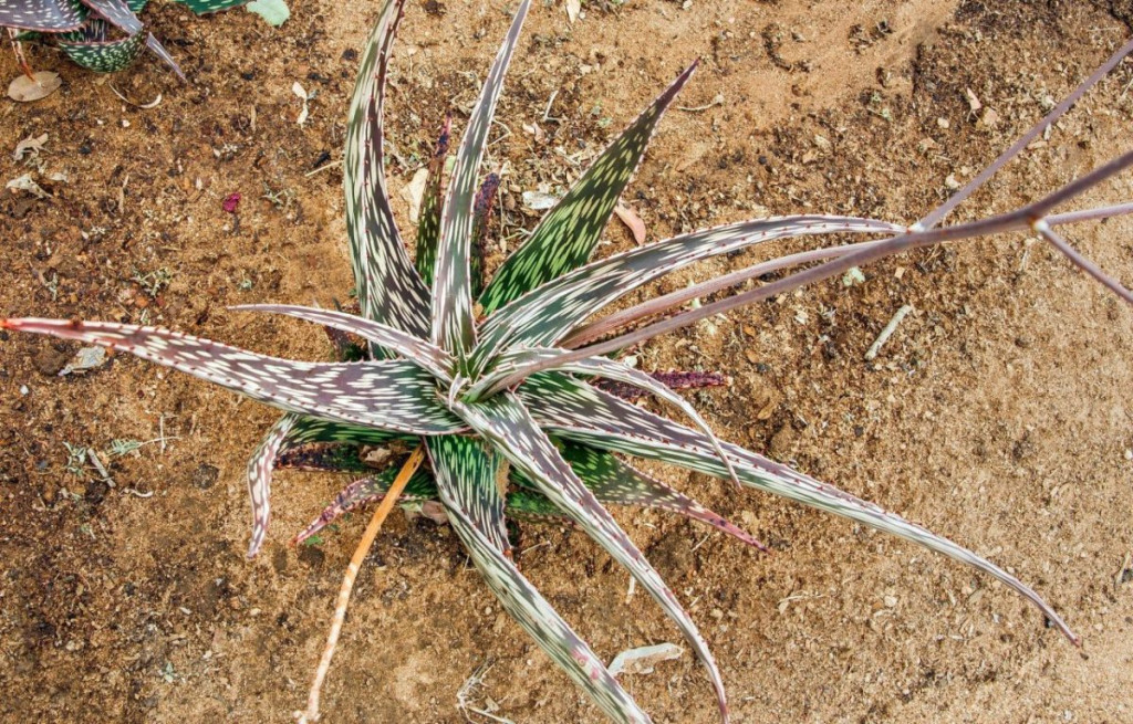 Aloe djiboutiensis, Doğu Afrika’ya özgü, özellikle Cibuti ve çevresindeki kurak ve kıyı bölgelerde doğal olarak yetişen bir Aloe türüdür. Bu tür, zorlu çevre koşullarına adapte olmuş yapısı ile dikkat çeker. Genellikle taşlık yamaçlarda, iyi drene olan zeminlerde gelişir. Sıcaklık dalgalanmalarına ve yoğun güneşe dayanıklı bir yapıya sahiptir. Aloe djiboutiensis yaprakları uzun, dar ve hafif kıvrımlı formdadır. Yapraklar rozet şeklinde dizilir ve genellikle yere yakın, yayvan bir yapı oluşturur. Renk çoğunlukla mat yeşil ile gri-yeşil arasında değişir. Yoğun güneş ışığı altında yaprak yüzeyinde bronz, kırmızımsı veya kahverengimsi tonlar oluşabilir. Yaprak kenarlarında küçük ve sert dişler bulunur. Bu dişler düzenli aralıklarla dizilir ve yaprak formunu belirginleştirir. Yaprak yüzeyi genellikle pürüzsüzdür, bazı bireylerde hafif beneklenmeler görülebilir.