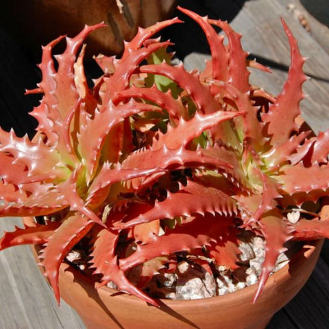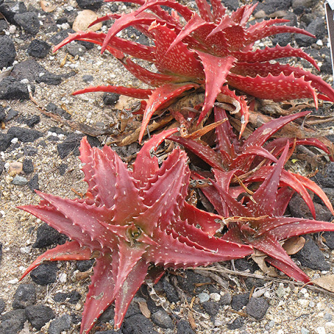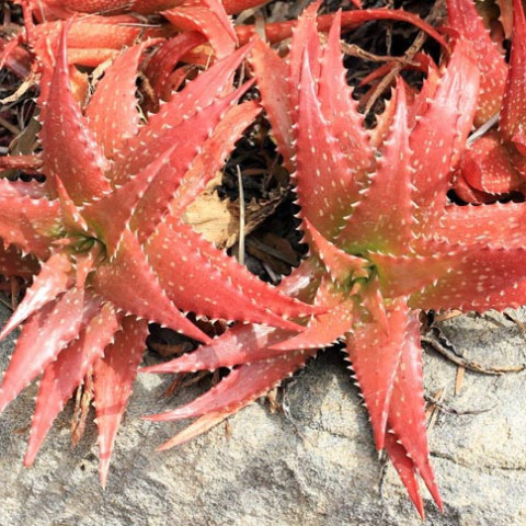 Aloe dorotheae, yoğun kırmızı renklenme potansiyeli ile öne çıkan, kompakt yapılı ve hızlı çoğalma eğilimi gösteren bir Aloe türüdür. Doğal olarak Doğu Afrika kökenlidir ve özellikle Tanzanya çevresinde yayılım gösterir. Bu tür, uygun ışık koşullarında belirgin şekilde renk değiştirerek dekoratif açıdan dikkat çekici bir görünüm kazanır. Koloni oluşturarak büyümesi, bitkinin zamanla geniş alanlara yayılmasına olanak tanır. Aloe dorotheae yaprakları dar, uzun ve üçgenimsi yapıdadır. Yapraklar rozet formunda dizilir ve genellikle sıkı bir yapı oluşturur. En dikkat çekici özelliği, yüksek ışık altında gelişen parlak kırmızı, turuncu veya kızıl tonlardır. Daha düşük ışık seviyelerinde yapraklar yeşil tonlara geri dönebilir. Yaprak yüzeyinde küçük beyaz benekler bulunabilir. Kenarlarında düzenli aralıklarla dizilmiş sert ve sivri dişler yer alır. Bu dişler, yaprak formunu vurgular ve bitkiye keskin bir görünüm kazandırır.