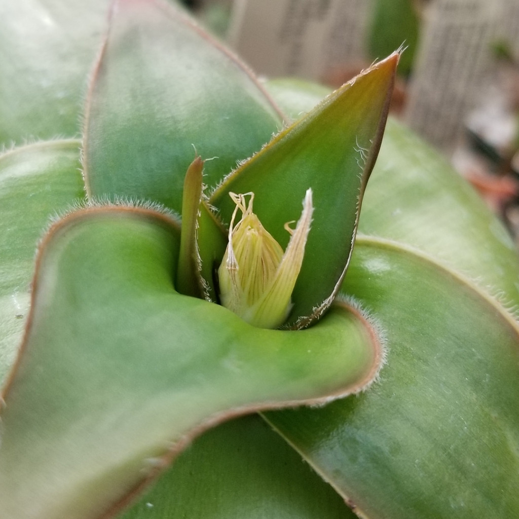 Aloe fimbrialis, Asphodelaceae familyasına ait, özellikle yaprak kenarlarındaki ince tüysü yapı (fimbrialar) ile ayırt edilen özgün bir Aloe türüdür. Bu tür, doğal olarak Madagaskar kökenli Aloe grubuna yakın morfolojik özellikler taşır ve kompakt rozet yapısı ile dikkat çeker. Gövdesiz ya da çok kısa gövdeli gelişim gösterir. Zamanla rozet genişler ancak genellikle tekli formunu korur. Estetik yaprak formu ve yüzey dokusu nedeniyle koleksiyon bitkisi olarak değer görür. Aloe fimbrialis yaprakları geniş, kalın ve etli yapıdadır. Yapraklar rozet etrafında simetrik şekilde dizilir ve genellikle yıldız formuna benzer bir görünüm oluşturur. Renk açık yeşil ile orta yeşil arasında değişir. Yüksek ışık koşullarında yaprak kenarlarında ve uçlarında kızıl, kahverengimsi tonlanmalar oluşabilir. Türün en belirgin özelliği, yaprak kenarlarında bulunan ince, beyazımsı ve tüysü uzantılardır. Bu yapı “fimbrial” olarak tanımlanır ve türün adını buradan alır. Yaprak yüzeyi genellikle pürüzsüzdür ancak kenar boyunca bu lifsi yapı net şekilde gözlemlenir. Yaprak dokusu su depolama kapasitesi yüksek olup kurak koşullara adaptasyon sağlar.