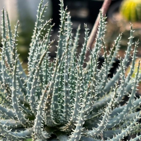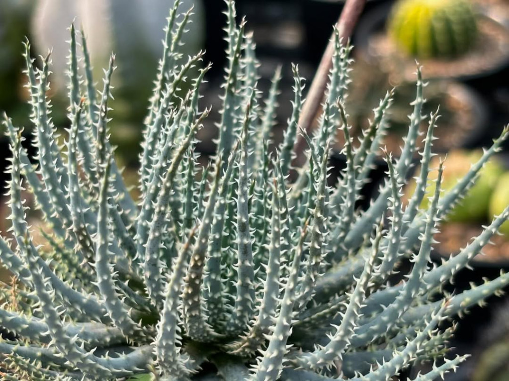 Aloe florenceae, Asphodelaceae familyasına ait, kompakt rozet yapısı ve yoğun dikenli yaprak dokusu ile ayırt edilen küçük boyutlu bir Aloe türüdür. Genellikle gövdesiz gelişim gösterir ve zamanla dipten sürgün vererek kümelenme eğilimi oluşturabilir. Tür, özellikle yoğun yaprak dizilimi ve sert dokulu yüzeyi nedeniyle koleksiyon bitkileri arasında yer alır. Aloe florenceae yaprakları dar, üçgensi ve sivri uçlu formdadır. Yapraklar rozet merkezinden yoğun ve sık şekilde çıkarak kompakt bir yapı oluşturur. Renk çoğunlukla gri-yeşil veya mavimsi yeşil tonlardadır. Yaprak yüzeyi boyunca kabartılı küçük çıkıntılar ve pütürlü bir doku bulunur. Bu yapı bitkiye sert ve dikenli bir görünüm kazandırır. Yaprak kenarları boyunca belirgin, düzenli aralıklarla yerleşmiş küçük dişler bulunur. Bu dişler genellikle açık renkli olup yaprak yüzeyindeki kabartılarla birlikte bitkinin karakteristik formunu oluşturur. Yüksek ışık koşullarında yaprak uçlarında ve kenarlarında hafif kızıl tonlanmalar gözlemlenebilir. Çiçeklenme döneminde Aloe florenceae, rozet merkezinden ince bir çiçek sapı geliştirir. Bu sap üzerinde küçük, tüp formunda çiçekler oluşur. Çiçek rengi çoğunlukla turuncu veya sarı tonlarındadır. Çiçekler salkım şeklinde dizilir ve genellikle dik ya da hafif eğimli bir yapı gösterir. Çiçeklenme çoğunlukla ilkbahar aylarında gerçekleşir. Çiçek oluşumu, bitkinin yeterli ışık alması ve olgunluk seviyesine ulaşması ile ilişkilidir.