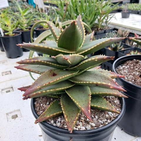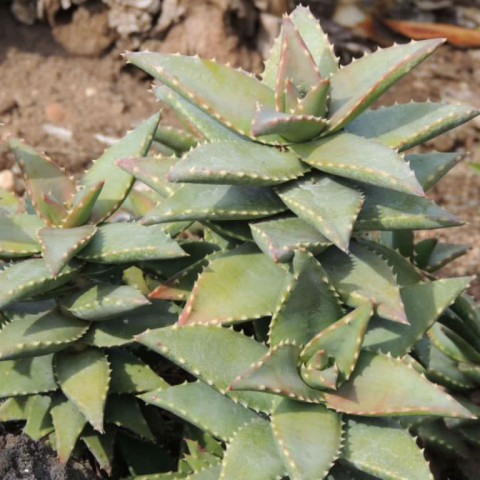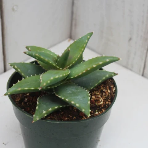 Aloe ‘Hellskloof Bells’, kompakt rozet yapısı ve yoğun sürgün oluşturma eğilimi ile dikkat çeken hibrit Aloe kültivarlarından biridir. Aloe pearsonii ve Aloe distans türlerinin çaprazlanması sonucu ortaya çıkmıştır. Bu tür, kısa sürede kümelenerek çok başlı bir yapı oluşturabilir. Aloe cinsinin genel özelliklerini taşıyan bu bitki, su depolayan yaprakları sayesinde kuraklığa uyum sağlamıştır. Aloe ‘Hellskloof Bells’ yaprakları kısa, kalın ve üçgenimsi formdadır. Yapraklar rozet çevresinde sık dizilir ve kompakt bir görünüm oluşturur. Renk genellikle yeşil tonlarındadır; yoğun ışık altında yaprak uçlarında ve kenarlarında kırmızımsı veya bronz tonlara geçiş görülebilir. Yaprak kenarlarında belirgin ve düzenli dişler bulunur. Bu dişli yapı, bitkinin karakteristik görünümünü güçlendirir. Yaprak yüzeyi genellikle pürüzsüzdür, bazı örneklerde hafif beneklenmeler görülebilir.