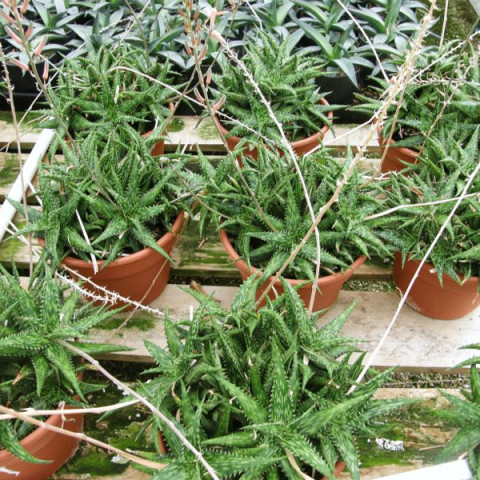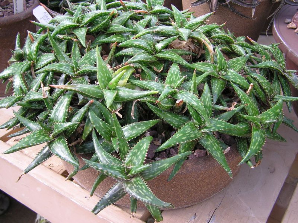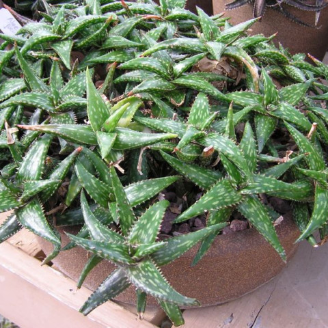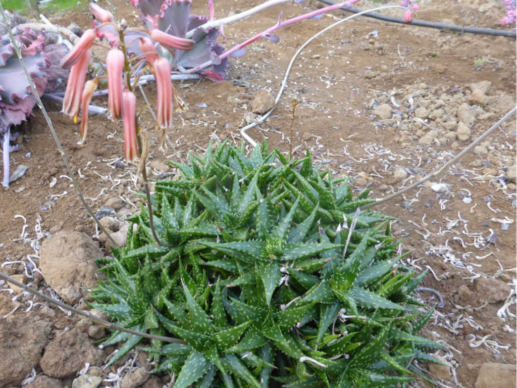 Aloe jucunda, küçük boyutlu, yoğun yavru veren ve kompakt rozet yapısıyla tanınan Aloe türlerinden biridir. Doğal olarak kurak ve kayalık alanlara uyum sağlamış bu tür, sınırlı alanlarda yetiştirilmeye uygun yapısı sayesinde saksı kültüründe oldukça başarılı sonuç verir. Latince tür adı “jucunda”, hoş veya zarif anlamına gelir ve bitkinin düzenli görünümünü yansıtır. Zamanla çok sayıda yavru oluşturarak sık kümeler meydana getirir. Aloe jucunda yaprakları kısa ile orta uzunlukta, üçgensi, sivri uçlu ve etli yapıdadır. Yapraklar simetrik rozet formunda dizilir. En belirgin özelliği, yeşil zemin üzerinde yer alan açık renkli benekli veya çizgimsi desenlerdir. Bu desenler yaprak boyunca düzensiz şekilde dağılır ve türe hareketli görünüm kazandırır. Yaprak kenarlarında küçük dişler bulunur. Dişler belirgin olsa da iri değildir. Yaprak rengi çoğunlukla parlak yeşil veya koyu yeşildir. Güçlü ışık altında hafif bronz ya da kızılımsı tonlar gelişebilir. Sağlıklı bireylerde merkez rozet sık kalır ve düzenli yeni yaprak üretimi sürer.
