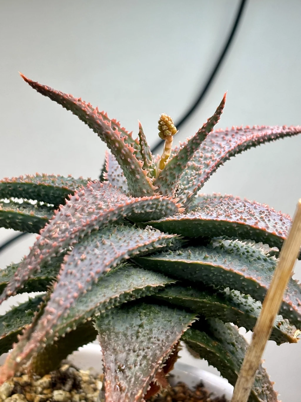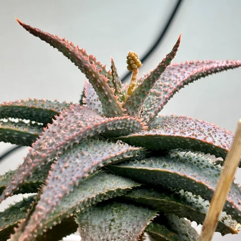 Aloe 'Lavender Star' çiçeklenmesi uygun bakım koşullarında görülebilir. Çiçek sapı rozet merkezinden yükselir ve üzerinde tüp formunda aloe çiçekleri oluşur. Rengi tonları pembemsi veya turuncuya yaklaşan tonlardır. Çiçeklenme için güçlü ışık, sağlıklı kök yapısı ve dengeli bakım önemlidir. Çiçek dönemi tamamlandıktan sonra kuruyan sap temizlenebilir.
