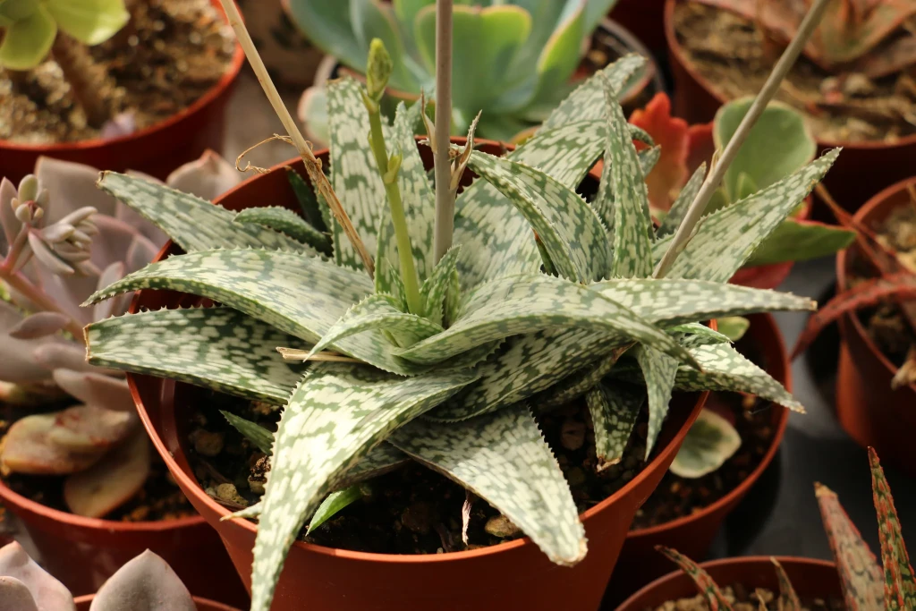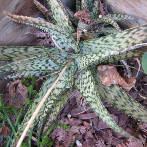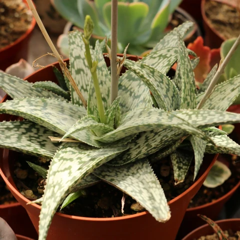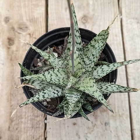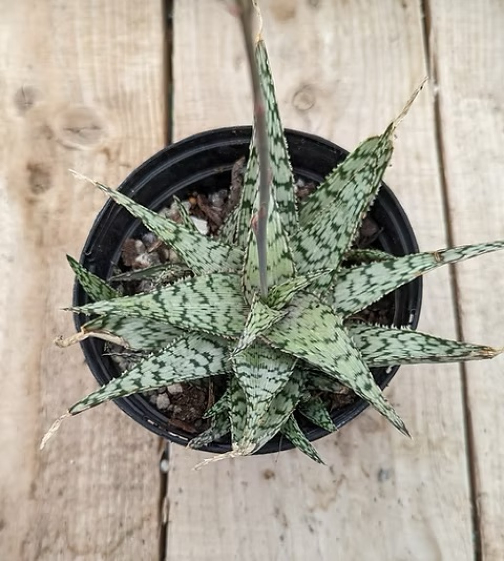 Aloe ‘Lizard Lips’, belirgin benekli yaprak deseni ve kompakt rozet formu ile dikkat çeken hibrit Aloe kültivarlarından biridir. Aloe descoingsii ve Aloe calcairophila'nın çaprazlanmasıyla elde edilenin Aloe bellatula ile çaprazlanması sonucu ortaya çıkmıştır. Bu tür, özellikle yaprak yüzeyindeki kontrastlı desenleri ve düzenli büyüme formu sayesinde dekoratif sukulent grubu içinde öne çıkar. Aloe cinsinin genel karakteristik özelliklerini taşıyan bu bitki, su depolama kapasitesi yüksek yapraklara sahiptir ve kurak koşullara adaptasyon göstermiştir. Aloe ‘Lizard Lips’ yaprakları uzun, üçgenimsi ve sivri uçlu yapıdadır. Yaprak yüzeyinde açık yeşil ile beyaz tonları arasında değişen yoğun beneklenmeler bulunur. Bu benekli yapı, bitkinin en ayırt edici özelliklerinden biridir ve ışık koşullarına bağlı olarak kontrast seviyesi değişebilir. Yaprak kenarlarında küçük ve düzenli dişler yer alır. Yapraklar rozet etrafında dengeli şekilde dizilir ve bitki genel olarak simetrik bir görünüm sunar. Düşük ışık koşullarında yapraklar uzayabilir ve benekli desen daha az belirgin hale gelebilir.