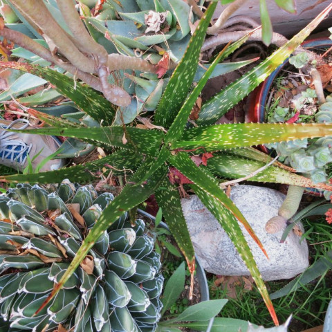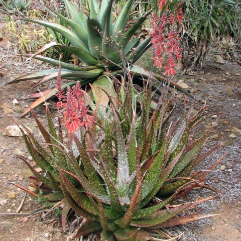 Aloe macrosiphon, benekli yaprakları, yayılıcı rozet formu ve dikkat çekici çiçek yapısıyla tanınan Aloe türlerinden biridir. Doğal yaşam alanlarında sıcak iklimlerde, taşlı ve geçirgen topraklarda gelişir. Kurak dönemlere dayanabilmesini sağlayan temel özelliği, etli yapraklarında su depolayabilmesidir. Gövdesi çoğu zaman kısa kalır ya da yaprak yoğunluğu nedeniyle görünmez. Yapraklar merkezden spiral düzenle çıkar ve genişleyen bir rozet oluşturur. Uygun koşullarda zamanla yan sürgünler vererek kümeli yapı kazanabilir. T Aloe macrosiphon yaprakları uzun, mızraksı, etli ve uç kısmı sivridir. Yaprak yüzeyi parlak yeşilden koyu yeşile kadar değişebilir. Üzerinde açık renkli benekler, çizgisel lekeler veya düzensiz desenler bulunabilir. Bu işaretler bitkiye güçlü bir kontrast kazandırır. Yaprak kenarlarında düzenli aralıklarla küçük dişler yer alır. Güçlü güneş altında yaprak kenarlarında kızarma, bronzlaşma veya morumsu tonlar görülebilir. Sağlıklı gelişimde merkezden sürekli yeni yaprak çıkışı gözlenir. Alt yaprakların zamanla kuruması doğal yenilenme sürecidir.
