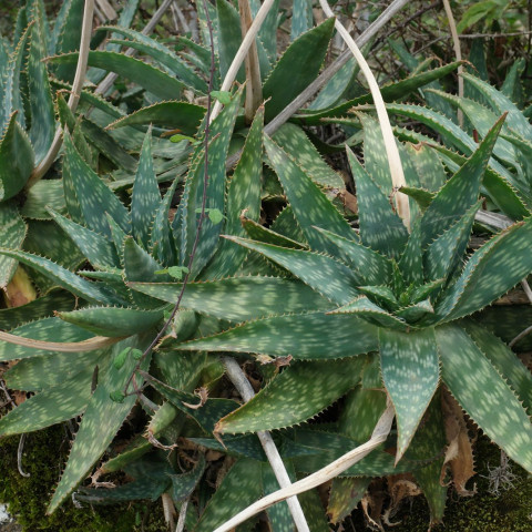 Aloe maculata, benekli yaprak desenleri, hızlı kümelenme özelliği ve yoğun çiçeklenmesiyle tanınır. Geniş yayılış alanına sahip olan bu tür, farklı iklim ve toprak koşullarına uyum gösterebilmesiyle dikkat çeker. Kurak dönemlere dayanıklılığını etli yapraklarında depoladığı su sayesinde sürdürür. Gövdesi genellikle kısa kalır ve yapraklar tabandan çıkarak kompakt rozetler oluşturur. Zamanla çok sayıda yavru vererek geniş kümeler haline gelebilir. Dayanıklı yapısı sayesinde başlangıç seviyesinde yetiştiriciler için de uygun türlerden biri olarak kabul edilir. Aloe maculata yaprakları geniş, kalın, üçgensi-mızrak formunda ve sivri uçludur. Yaprak rengi açık yeşilden koyu yeşile kadar değişebilir. Güçlü güneş altında kızılımsı, bronz veya morumsu tonlar gelişebilir. Türün en belirgin özelliği, yaprak yüzeyinde bulunan açık renkli benekler ve bant benzeri desenlerdir. Bu desenler bireyler arasında yoğunluk bakımından farklılık gösterebilir. Yaprak kenarlarında kısa fakat belirgin dişler bulunur. Dişler çoğu zaman sarımsı, turuncu veya kahverengiye yakın ton taşıyabilir. Sağlıklı gelişimde merkezden düzenli yeni yaprak çıkışı görülür. Alt yaprakların zamanla kuruması doğal yenilenme sürecidir.