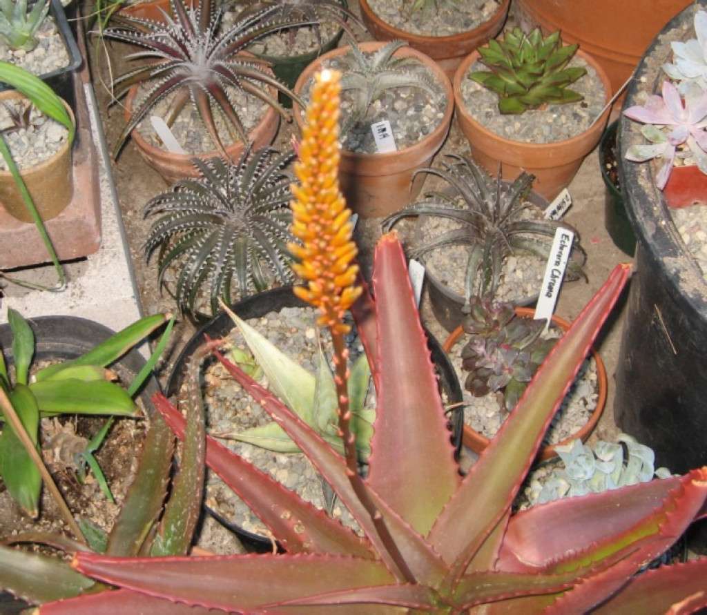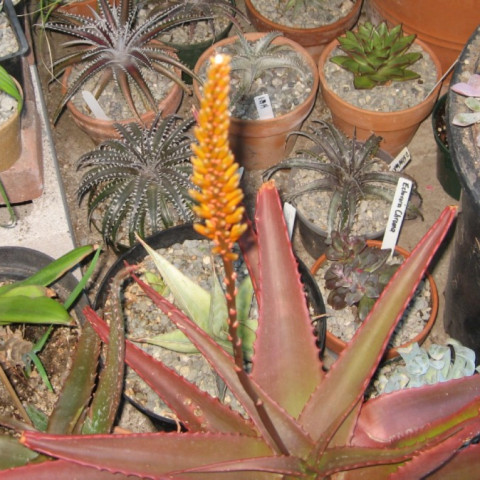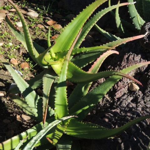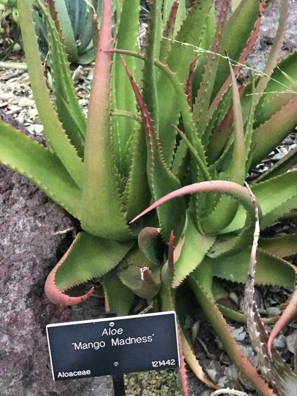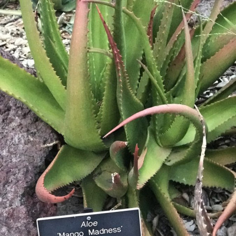 Aloe ‘Mango Madness’, Aloe cinsine ait hibrit karakterli, özellikle yaprak renk geçişleri ve çiçeklenme formuyla dikkat çeken bir sukulenttir. Bu bitki, Aloe vanbalenii ve Aloe cameronii türlerinin çaprazlanması sonucu ortaya çıkmıştır. Bu tip hibrit Aloe formları, genetik olarak birden fazla türün özelliklerini taşıdığı için hem renk hem de büyüme alışkanlığı açısından değişkenlik gösterebilir. Bitki genellikle açık rozet formunda gelişir ve uygun koşullarda çevresine sürgünler vererek yayılabilir. Gelişim sürecinde gövde belirginleşebilir ve yapraklar dışa doğru daha geniş açıyla konumlanabilir. Aloe ‘Mango Madness’ yaprakları etli, uzun ve sivri uçlu yapıdadır. Yaprak yüzeyi çoğunlukla düz olmakla birlikte hafif pürüzlü bir doku da gösterebilir. En belirgin özelliklerinden biri, yaprakların çevresel koşullara bağlı olarak renk değiştirebilmesidir. Düşük stres ve dengeli koşullarda yeşil tonlar baskınken, yüksek ışık ve kuraklık gibi faktörlerle birlikte kırmızı, turuncu ve kızıl tonlar yoğunlaşabilir. Yaprak kenarlarında düzenli aralıklarla dizilmiş dişsi yapılar bulunur ve bu kenarlar genellikle kırmızımsı renkte gelişir. Bu renk kontrastı, bitkinin görsel değerini artıran temel unsurlardan biridir. Yaprak dokusu, uzun süreli nem ve yetersiz hava akışı koşullarında zarar görebilir.