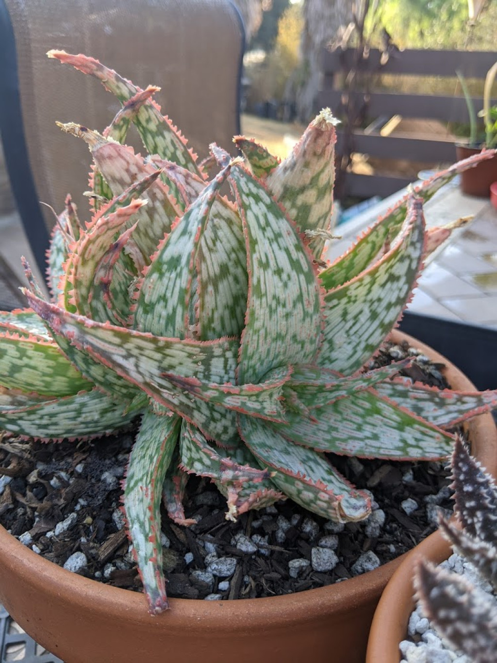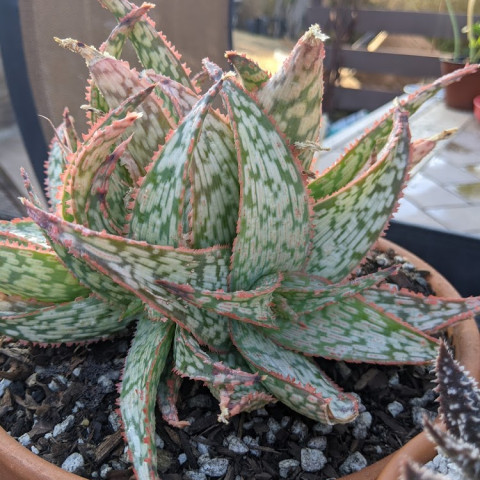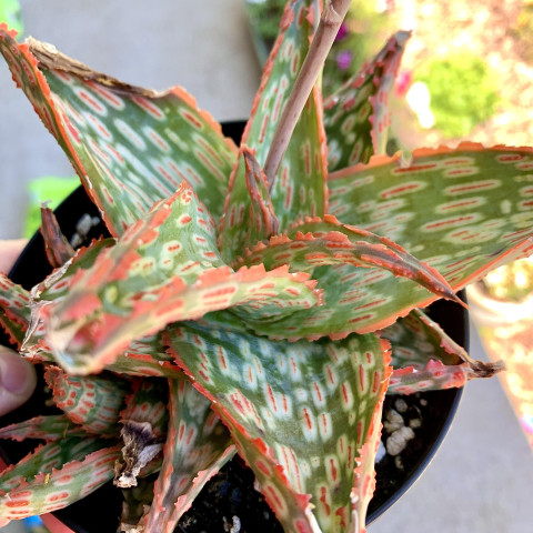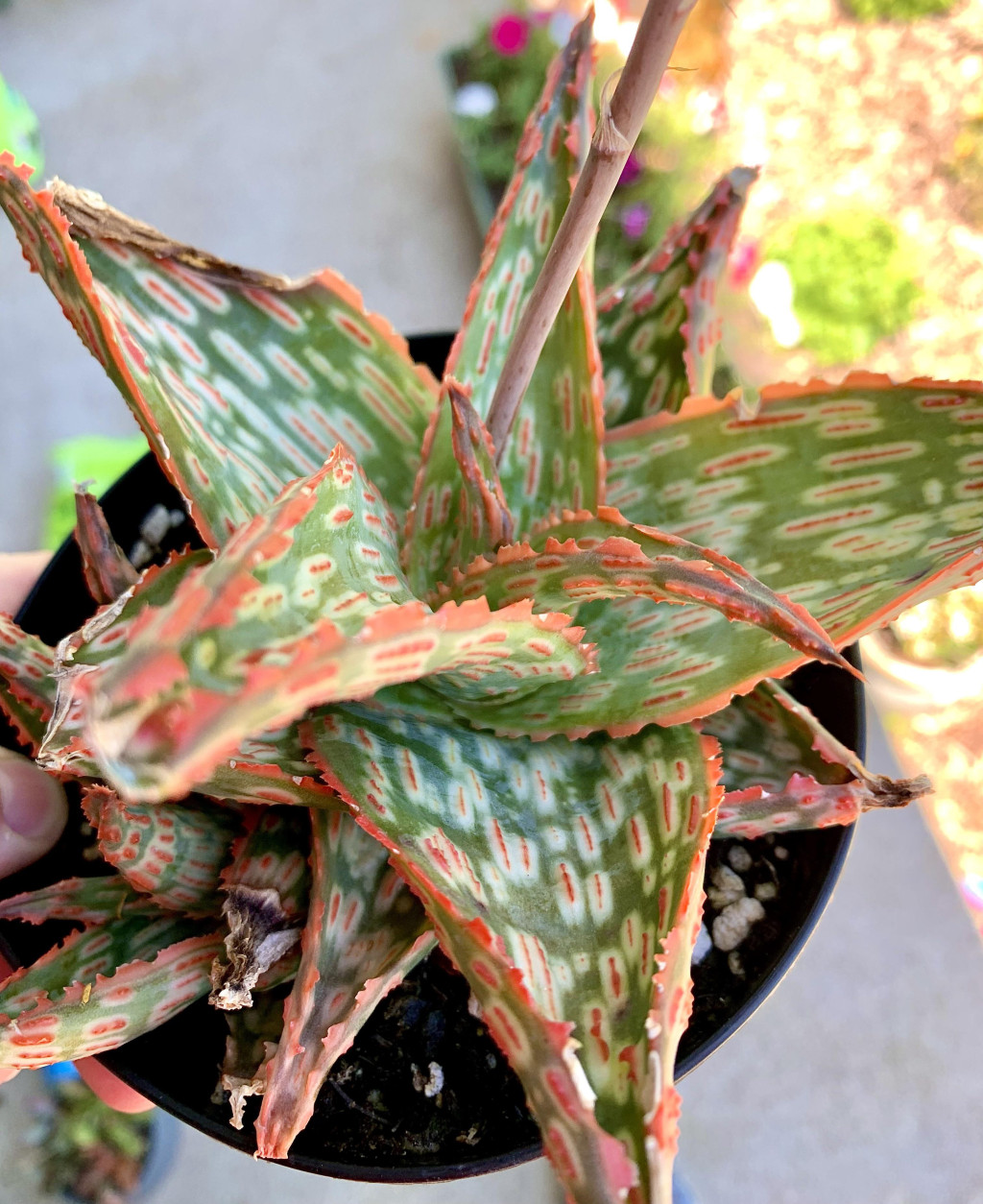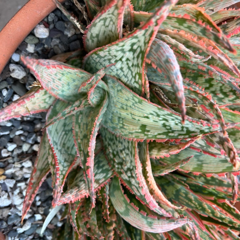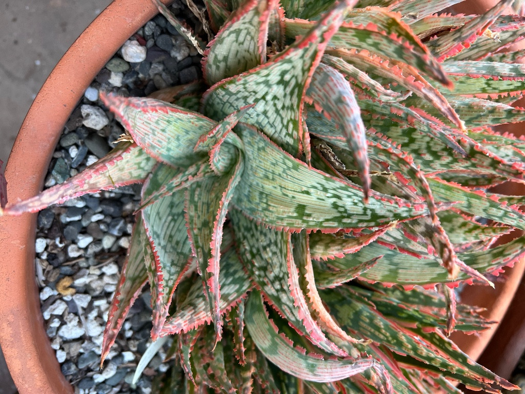 Aloe ‘Mauna Kea’, Aloe cinsine ait hibrit bir kültivar olup, farklı Aloe türlerinin melezlenmesi sonucu elde edilmiştir. Hibritlenen türler bilinmemektedir. Bu tip hibritlerde, ebeveyn türlerin morfolojik özellikleri bir arada görülebilir. Aloe ‘Mauna Kea’, özellikle yaprak formu ve yüzey desenleri ile öne çıkan, koleksiyon değeri yüksek sukulentler arasında yer alır. Bitki, rozet formunda gelişim gösterir ve zamanla yan sürgünler oluşturarak kümelenme eğilimi gösterebilir. Hibrit yapısı nedeniyle büyüme karakteri, yetiştirme koşullarına bağlı olarak değişkenlik gösterebilir ancak genel olarak kompakt ve kontrollü bir gelişim sergiler. Aloe ‘Mauna Kea’ yaprakları etli ve su depolama kapasitesi yüksek yapıdadır. Yaprak formu, dar ve uzun Aloe türlerine kıyasla daha geniş ve hacimli bir karakter gösterir. Yüzeyde belirgin desenler, beneklenmeler veya kontrast renk geçişleri görülebilir. Bu türde özellikle yeşil zemin üzerinde kırmızı, turuncu veya açık tonlu çizgisel ya da noktasal desenler dikkat çeker. Yaprak kenarlarında dişsi çıkıntılar bulunur ve bu yapı bitkinin genel formuna sert bir karakter kazandırır. Yaprak kalınlığı, birçok hibrit Aloe’de olduğu gibi belirgindir ve bu durum bitkinin su tutma kapasitesini artırır. Işık şiddetine bağlı olarak yaprak renklerinde belirgin değişimler gözlemlenebilir.